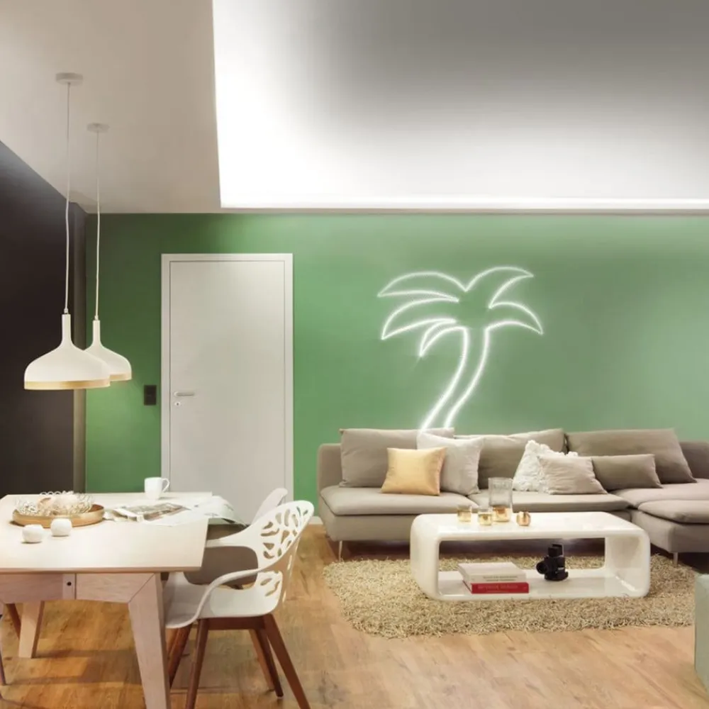Det er meget ukompliceret at montere MaxLED 500 LED-striben, da den selvklæbende bagside gør det nemt at fastgøre den på det ønskede sted. Striben udsender et varmt hvidt lys og er beskyttet mod vandstænk og støv med en gennemsigtig belægning. I kombination med en matchende krympeslange kan strimlen også bruges i fugtige rum. Dimensionerne kan ændres efter ønske, da strimlen kan afkortes eller forlænges op til en længde på 5,5 m.