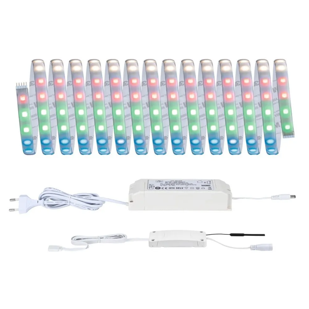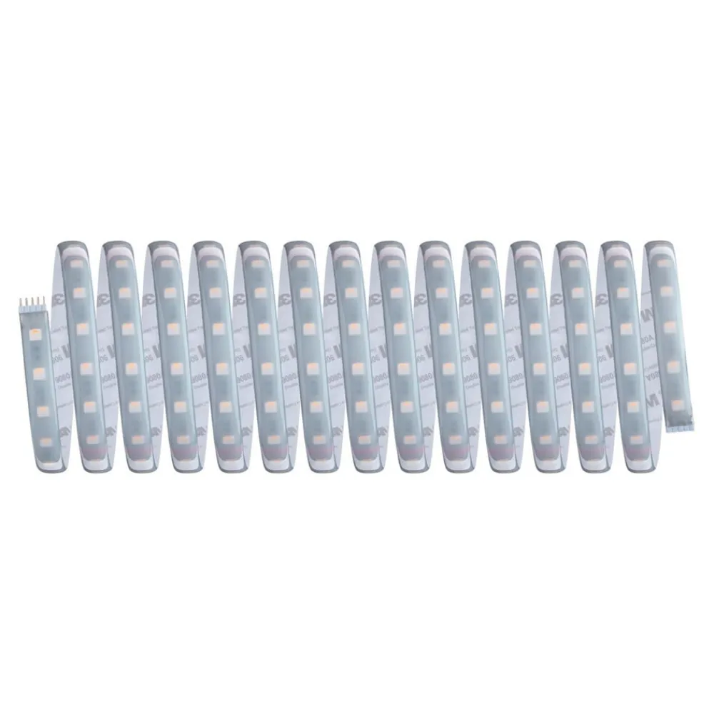 MaxLED LED strip basissættet giver betagende lysscener i hvidt eller farvet lys indendørs og udendørs. Strimlen er selvklæbende og fleksibel, så den kan fastgøres på flade eller buede overflader. Desuden giver stænkvandsbeskyttelsen i henhold til IP44 mulighed for brug i fugtige rum.