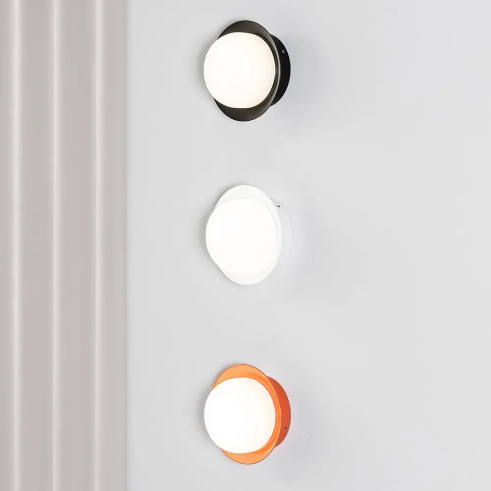 LED-væglampen May har en opalhvid glasskærm i den berømte LED-væglampe May, der sidder på den berømte præsentationsplade. Den understøttes af et robust vægbeslag af stål. May har en IP44-beskyttelsesklasse og er således beskyttet mod stænkvand.