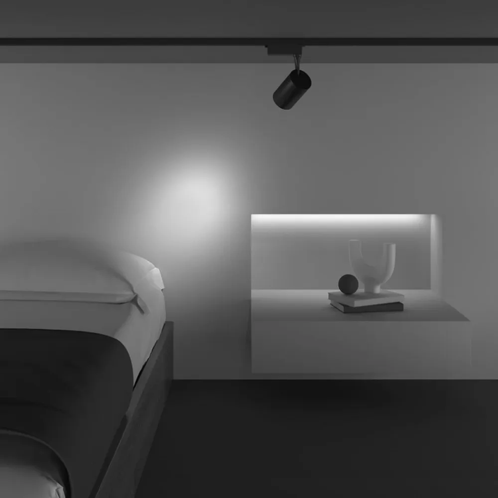 Vipbar og drejelig Vuoro Unity LED-skinnespot til enkeltkredsløbssystemer i sort Vuoro Unity LED-skinnespot har moderne, universalhvide LED’er i et bevægeligt spot. Den er lavet af pulverlakeret aluminium og kan drejes 355° og vippes 90°. Vuoro Unity LED-skinnespot giver derfor en meget god, tilpasselig og punktvis belysning.