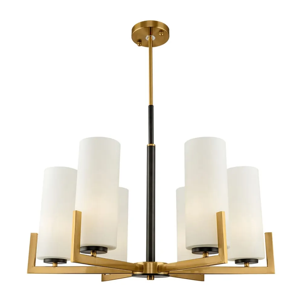 Maytoni Fortano lysekrone, 6 lyskilder, glasskærme
