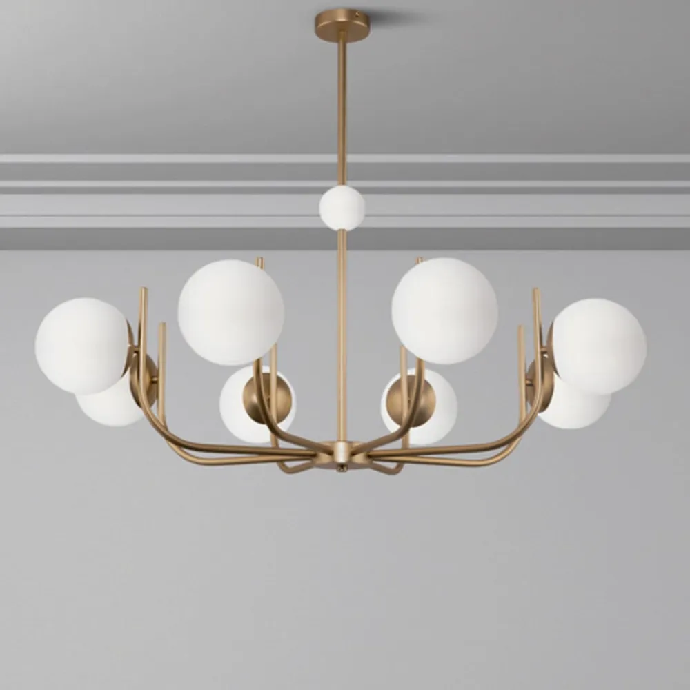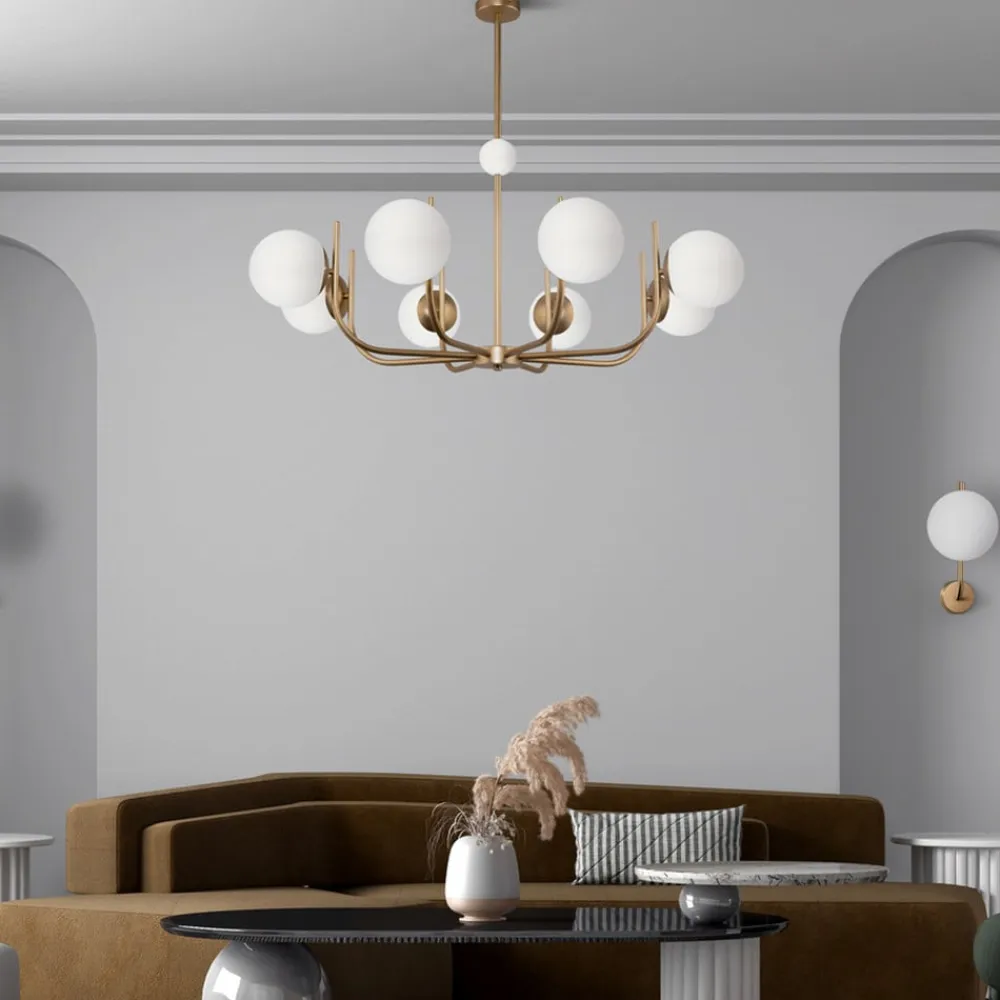 Belysningskunst til opholdsrum: Rendez-vous hængelampe Rendez-vous hængelampen, et 8 lyskilder stort blikfang med messinglook, sætter nye standarder for rumbelysning. Med sit elegante design og varme farveskema skaber den en atmosfære, der bidrager til både afslapning og øget produktivitet. Rendez-vous er ideel til stuer, spisepladser og soveværelser, hvor den skaber en særlig stemning med sit lysspil. Selvom der ikke medfølger en dæmper, kan lysets intensitet reguleres ved hjælp af en ekstern dæmper for at opnå den ønskede omgivelsesbelysning. Rendez-vous-pendlen fra Maytoni er mere end bare en lyskilde – den er et udtryk for sofistikeret design og funktionel elegance i dit hjem.