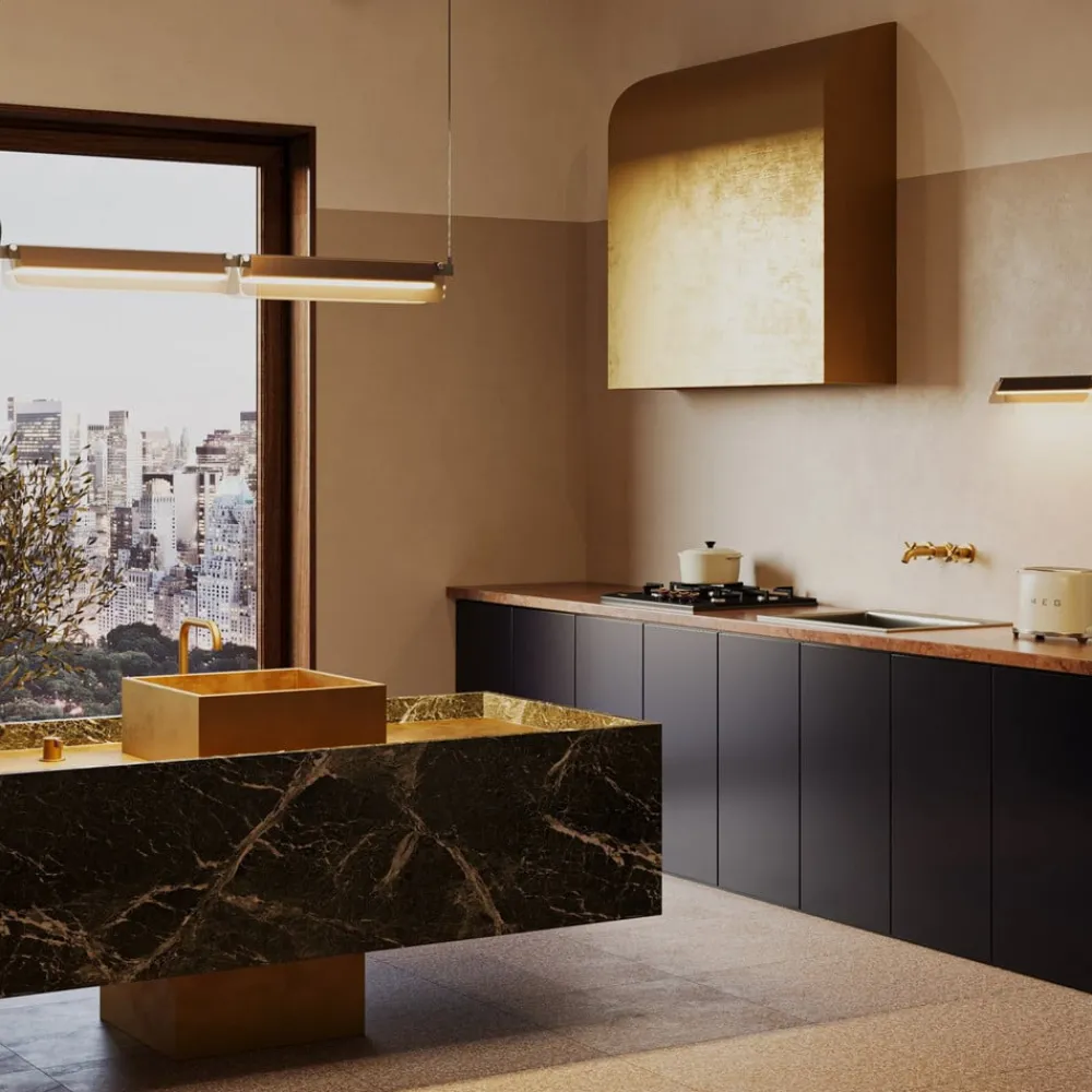 Kombinationen af messingfarvede elementer og ravfarvet glas giver lampen et elegant udseende, der passer perfekt ind i moderne indretningsstilarter. Med en farvegengivelse på 80 Ra skaber lampen en naturlig og behagelig lyseffekt, der sætter rummet stilfuldt i scene.