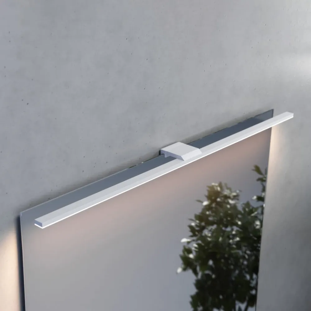 Moderne Triga LED-spejlarmatur i hvidt til badeværelsetMed sit slanke, rektangulære design, ensfarvede finish og effektive LED-teknologi er Triga en moderne lyskilde til spejle i gangen eller på badeværelset. Aluminiumskroppen huser nedadstrålende LED’er, hvis lys er diffust af en satinbelægning og overbeviser med lav blænding. Armaturet har en holder, der gør det muligt at montere direkte på den øverste kant af spejlet – Beskyttelsesklasse: IP44 – Inklusive LED-driver – Reduceret blænding (UGR < 19)