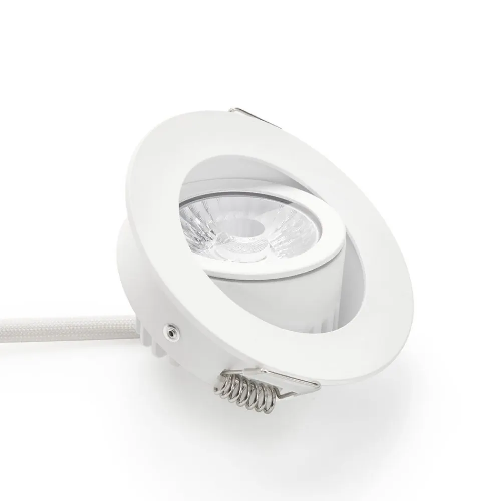 Rundt Rico LED-indbygningsarmatur med lav indbygningsdybde Rico LED-indbygningsarmaturet er kun 3 cm dybt og passer ind i eksisterende standardborehuller takket være sin standarddiameter på 6,8 cm, hvilket gør det nemt at udskifte eksisterende indbygningsspots. Takket være hybridoptikken ligner spotlampen en halogenlampe. Indbygningsspottet i trykstøbt aluminium kan drejes 30° og udsender varmhvidt lys med 2.800 K, som imponerer med et meget godt farvegengivelsesindeks på Ra 95, da alle farver gengives meget strålende og naturligt. For at tilslutte indbygningsspottet kræves en LED-driver, der opbevares som tilbehør.