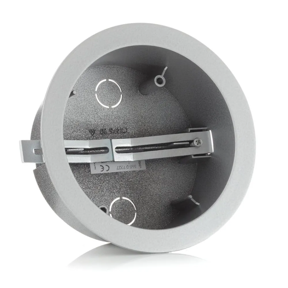 Egnet pot til forsænket montering af påbygningsmonteret Monopoint Denne forsænkede pot muliggør forsænket montering af Eutracs påbygningsmonterede Monopoint – Lofttykkelse op til 30 mm – Minimum installationshøjde 75 mm, loftudskæring Ø 126 mm, bæreevne op til 10 kg