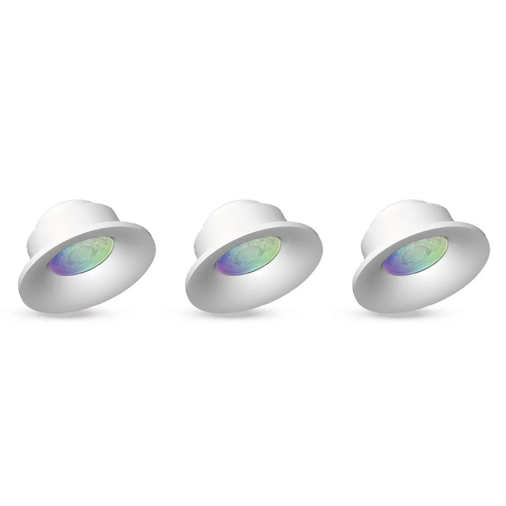 Spotlight LED-indbygningssættet byder på tre downlights med en bred vifte af lys. Indbygningsarmaturerne kan styres enten via en fjernbetjening (se tilbehør) eller via almindelige Smart Home-systemer via ZigBee 3.0. Lysfarven kan indstilles i alle hvide og andre farvetoner; desuden kan lyset dæmpes trinløst uafhængigt af farven.