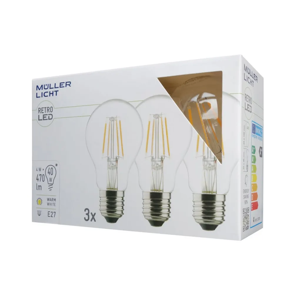 – Leveringsomfang 3x LED-lampe retro filament E27