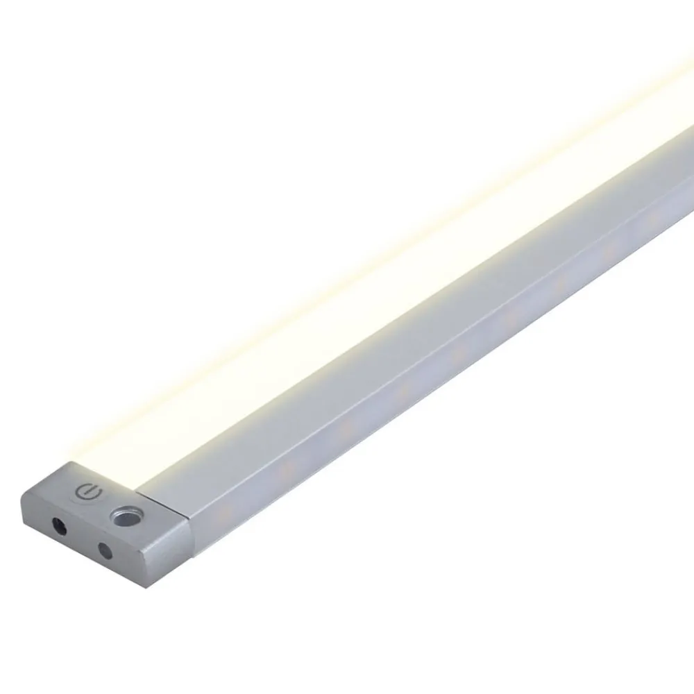 Funktionel LED-underskabslampe Olus Sensor 80 med lysdæmper Olus Sensor er en meget funktionel LED-underskabslampe til køkkenet eller hobbyrummet. Den giver enten direkte lys med en universal hvid lysfarve eller indirekte lys med en varm hvid lysfarve. Den integrerede berøringssensor kan bruges til at skifte mellem direkte og indirekte lys. Det er også muligt at kombinere begge lysfarver. Den kan tændes og slukkes med en enkel håndbevægelse ved hjælp af den integrerede bevægelsessensor, og dæmpning styres også via sensoren. Hukommelsesfunktionen sikrer, at den indstillede lysfarve og lysstyrke gemmes og er tilgængelig med det samme, når lyset tændes igen. Lampen er hurtig og nem at installere og har en længde på 80 cm – LED-underskabslampe med berøringssensor til at skifte mellem indirekte lys (3.000 K) eller direkte lys (4.000 K), individuelt eller i kombination – inkl. hukommelsesfunktion til at gemme den sidst valgte indstilling – dæmpbar via bevægelsessensor – meget lavt energiforbrug – enkelt design, der passer perfekt ind i alle rum