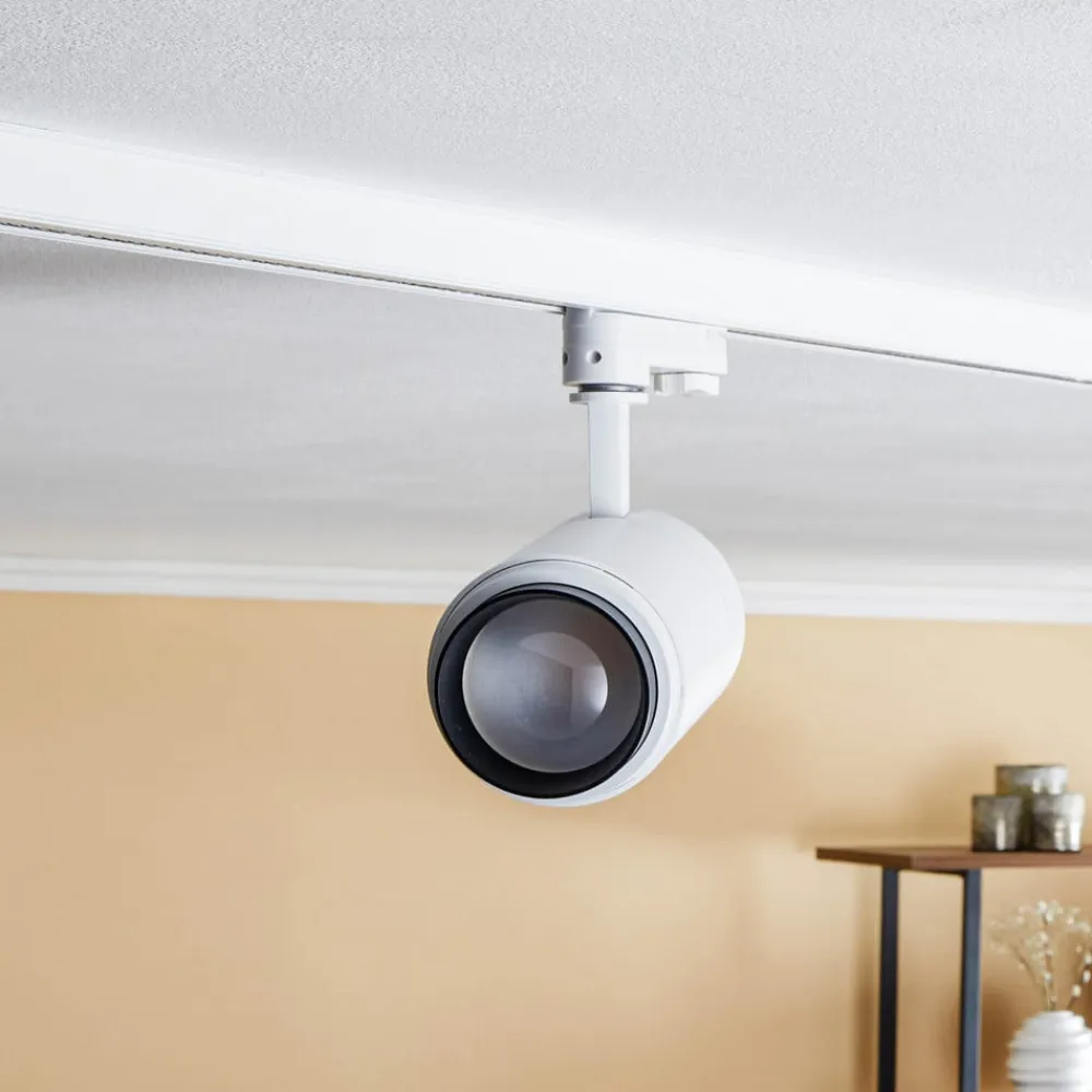Med justerbart lysudbytte – Nanna LED-skinnespot Nanna-skinnespot af hvid aluminium har et individuelt justerbart lampehoved, der ikke kun kan drejes og svinges, men også har en variabel strålevinkel. Linsen kan nemt varieres fra en smal 15° til en bredere 60° ved blot at dreje lampehovedet. Der er små markeringer på spotlighten til korrekt indstilling af vinklen. Nanna er velegnet som LED-spotlight til 3-fasede systemer og kan f.eks. bruges til butiksbelysning i den kommercielle sektor. Afhængigt af om et objekt skal belyses specifikt, eller om et helt område skal belyses, kan Nanna skinnespot give lys i den rigtige vinkel. Med en CRI-værdi på over 90 kan der opnås en meget god farvegengivelse, så farvetonerne gengives så trofast som muligt med Nanna skinnespot.