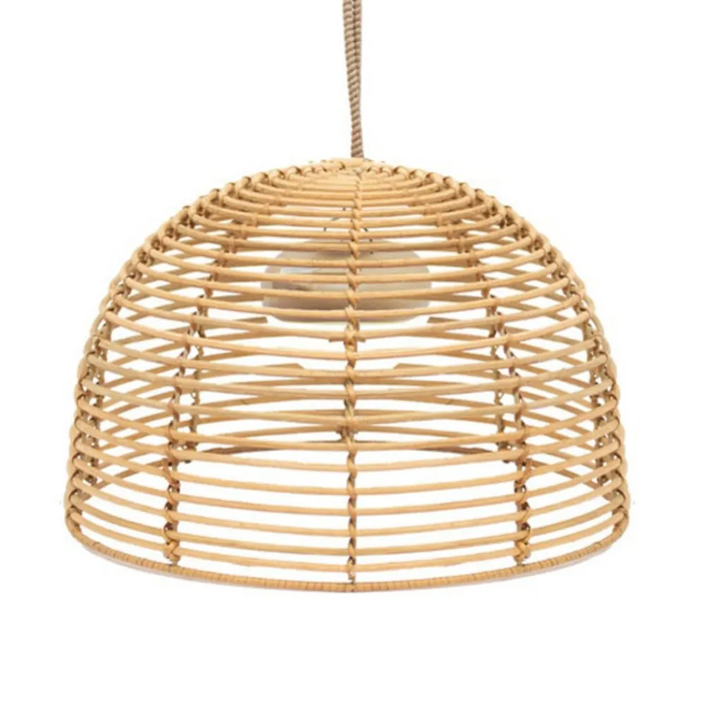 Batteridrevet Bossa LED-hængelampe med rattan-skærm Bossa LED-hængelampen har en meget naturlig og effektiv effekt takket være den lyse rattan-skærm og den lange ophængningssnor. Hængelampen kræver ingen installation, men kan hænges frit og hvor som helst udendørs eller indendørs, på et terrassetag, i et træ, under et tag – takket være det genopladelige batteri er der ingen grænser for dens anvendelsesmuligheder. Den medfølgende fjernbetjening kan bruges til at skifte lyset fra den medfølgende pære til tre lysstyrker. Armaturet ser særligt effektivt ud, når det kombineres med flere armaturer fra serien, for eksempel i en strandbar eller et cateringfirma. Lysets varighed er mellem 6 og 20 timer, afhængigt af lysindstillingen. Et USB-ladekabel til opladning af lyset på en powerbank eller via adapter (medfølger ikke) i stikkontakten medfølger – inkl. genopladeligt batteri 1 x 6000 mAh – inkl. micro USB-ladekabel og fjernbetjening – lysvarighed med fuldt batteri op til 20 timer – opladningstid 4 til 6 timer