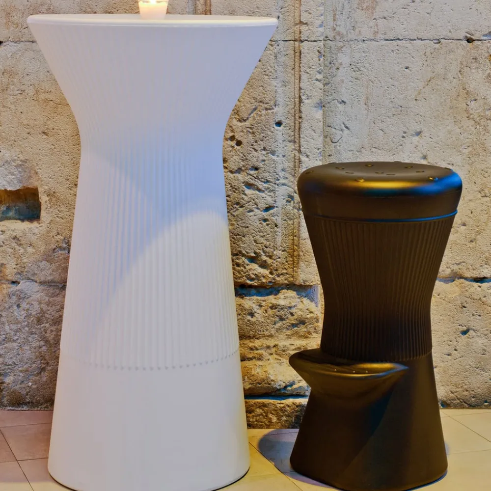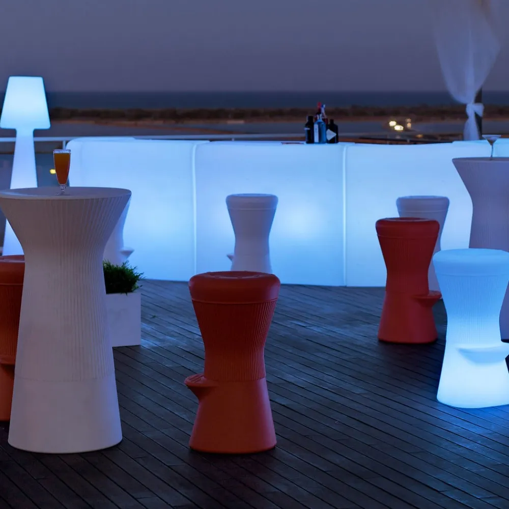 Oplyst Capri-barbord til indendørs og udendørs brug Capri-barbordet fra den spanske belysningsproducent Newgarden er både et praktisk barbord og en oplyst dekoration. Bordet er lavet af polyethylen og er udstyret med RGB-lysdioder og hvide lysdioder, som kan justeres og dæmmes med den medfølgende fjernbetjening. Capri-barbordet er et HighLight til enhver privat havefest, men også i den kommercielle sektor, i cateringbranchen eller hotelbranchen. Afhængigt af lysindstillingen lyser bordet i 8 til 12 timer uden behov for et kabel, da det er udstyret med integrerede genopladelige batterier, der kan genoplades på 4 til 6 timer ved hjælp af det medfølgende ladekabel. Det oplyste Capri-barbord er fremstillet af det spanske firma Newgarden. Virksomheden fremstiller hovedsageligt lysende genstande af polyethylen til indendørs og især udendørs brug. Den spanske producents produktsortiment omfatter bord-, gulv- og hængelamper, oplyste urtepotter og oplyste møbler. – Genopladeligt batteri 2 x 2.000 mAh lithium – Belysningens varighed 8 til 12 timer afhængigt af lysindstillingen – Opladningstid 4 til 6 timer – Inkluderer 1,5 m ladekabel og fjernbetjening