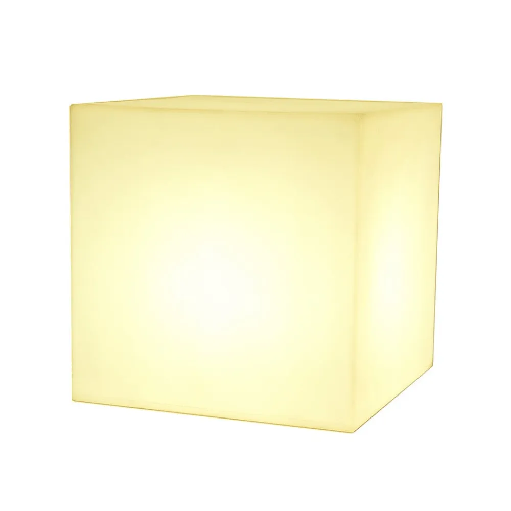 Dæmpbar Cuby LED-solcellelampe med RGBW-farveskift Cuby LED-solcellelampen er lavet af robust polyethylen, som beskytter den mod ekstreme temperaturer og UV-stråling. Cuby har også en IP65-beskyttelsesgrad, hvilket gør den ideel til udendørs brug. Takket være det tidløse kubeformede design kan solcellelampen nemt integreres i forskellige miljøer og bruges som en dekorativ lyskilde i haven, på terrassen eller på altanen. Lyset oplades ved hjælp af solenergi eller alternativt via USB-porten. Så snart mørket falder på om aftenen, tændes solcellelampen automatisk. Cuby kan dæmpes med den medfølgende fjernbetjening, og det er også muligt at styre RGBW-farveskiftet og justere farvetemperaturen fra varm hvid til dagslys hvid.