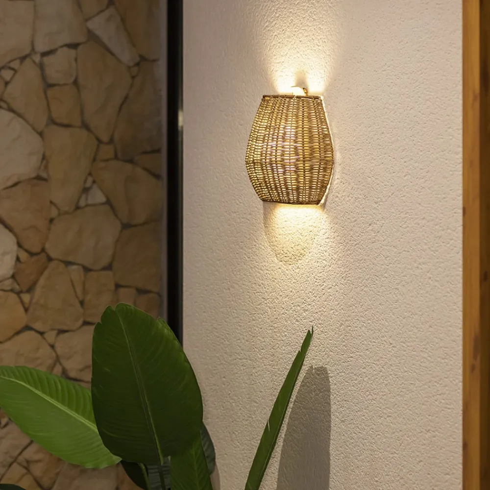Lysdæmpbar LED udendørs væglampe Saona i rattan