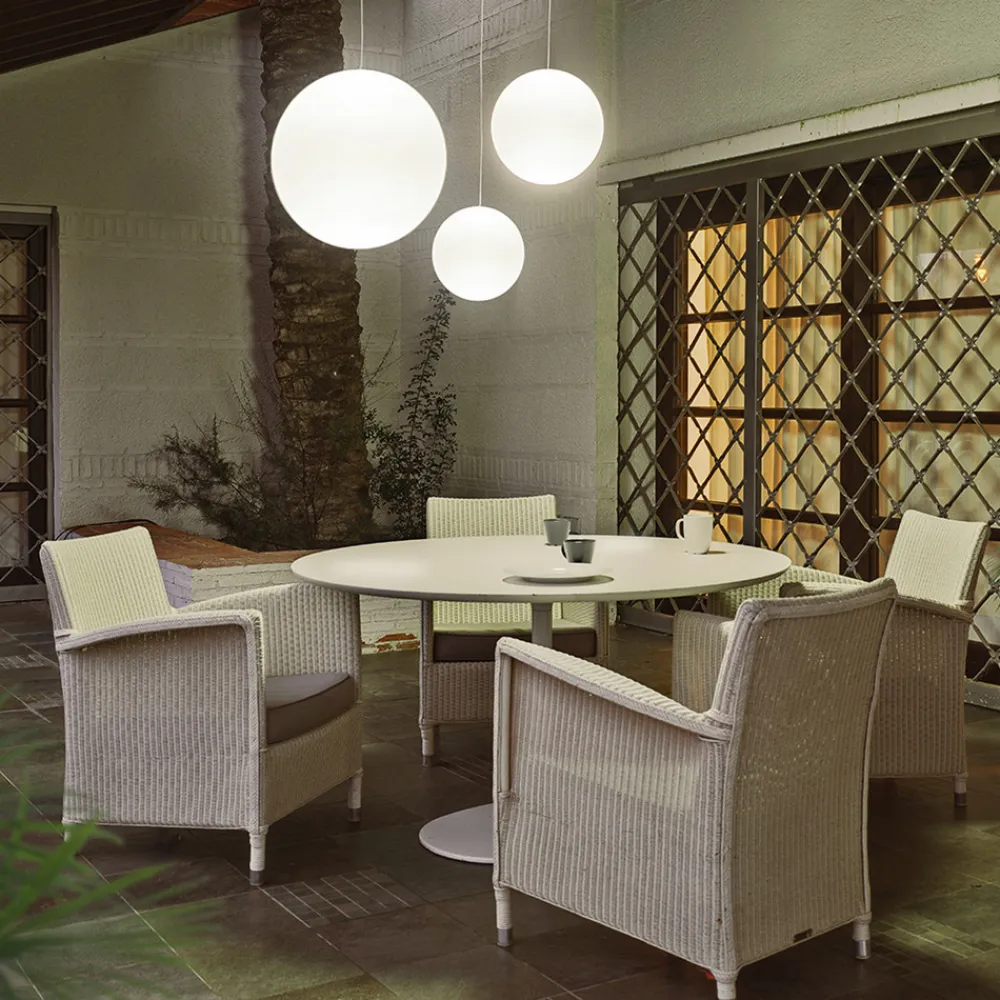 Det kugleformede LED-pendelarmatur Pianeta har et tidløst design og passer derfor nemt ind i mange miljøer. Den kan f.eks. bruges på altanen, på terrassen eller endda i haven. Med den medfølgende fjernbetjening kan pendellampen dæmpes, og lysfarven kan varieres fra varm hvid til dagslys. På denne måde kan lysforholdene tilpasses optimalt til de individuelle behov. Pianeta kan nemt oplades via det medfølgende USB-kabel, så der ikke er brug for et strømkabel under drift, og lampen kan placeres fleksibelt.