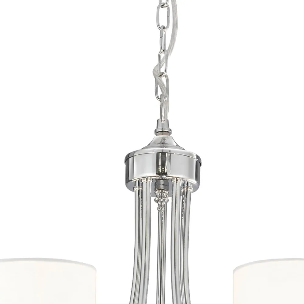 NINA lysekrone med hvide tekstilskærme og udførlig glaskrystalophæng