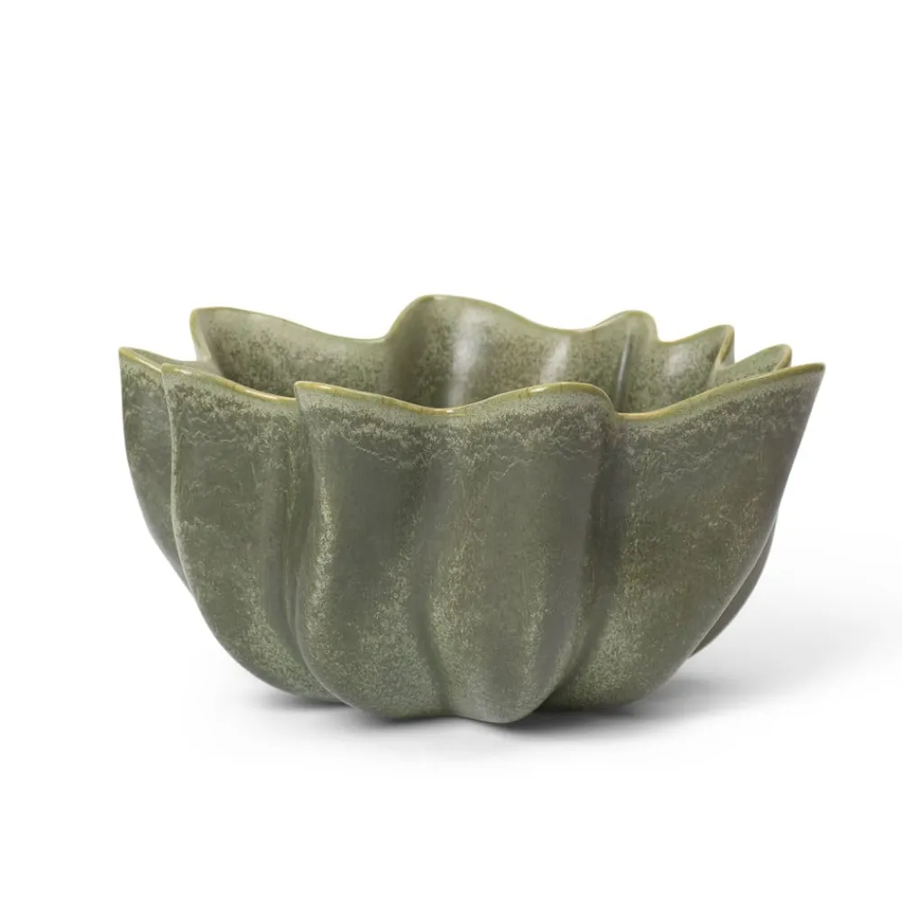 Nium keramikskål fra ferm LIVING Nium-skålens design er inspireret af det yndefulde flow i draperede tekstiler og har flydende, elegante folder. Den reaktive glasur leger med lys og skygge og fremhæver skålens dynamiske kurver. Du kan bruge Nium som frugtskål eller til servering, eller blot lade den tale for sig selv som et dekorativt objekt. Produktinformation: Keramik med reaktiv glasur. På grund af glasurens skygge kan der forekomme afvigelser fra produktbilledet. Plejeanvisning: Vaskes i hånden med opvaskemiddel.