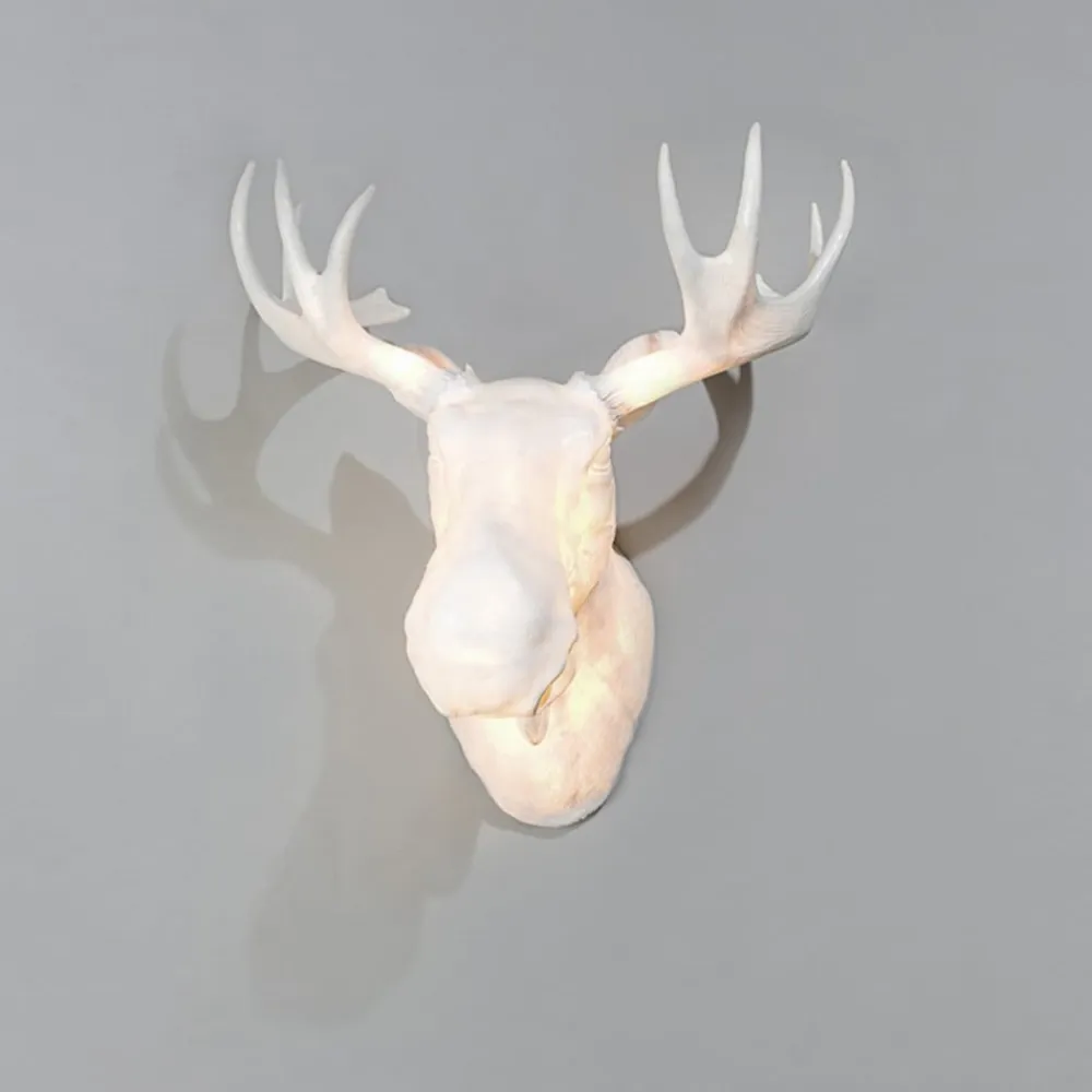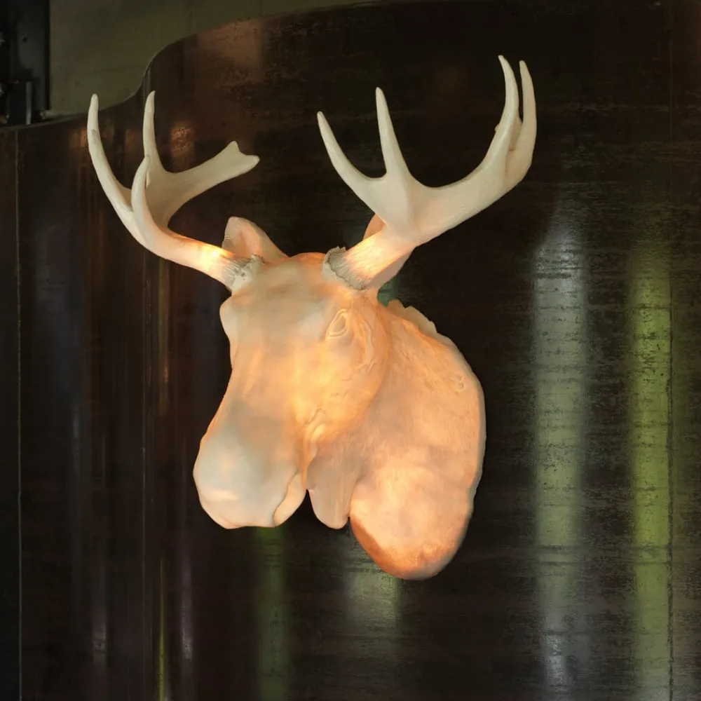 Et trofæ af lys: designer-væglampen MooDenne lampe i form af et elghoved gengiver sin virkelige model i naturtro dimensioner. Men designerne Trond Svendgard og Ove Rogne, der er inspireret af dette dyr, gjorde mere end bare at gengive elgen i al sin pragt. De udtænkte et armaturhus af polyresin, som overbeviser med en behagelig belysning indefra. Det helt blændfrie lys, der fylder elgens hoved, kommer fra fire sparepærer (medfølger ikke), som er placeret i dyrets hoved og gevir. Dette skaber et meget unikt armatur til stuer og gange, som bliver et unikt designelement.