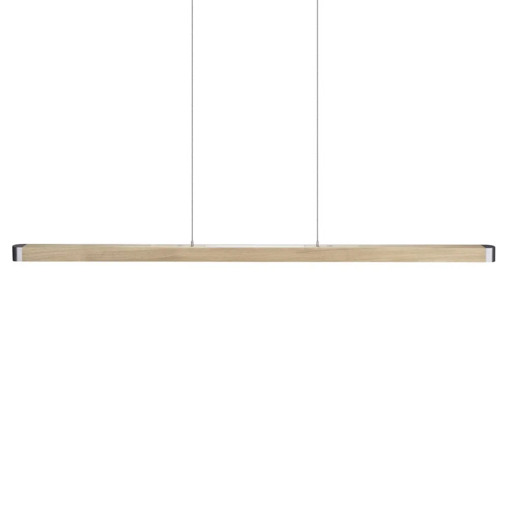 Slank LED-pendelarmatur Novelie med detaljer i mat nikkelFunktionelt såvel som visuelt præsenterer dette pendellysarmatur sig selv som en moderne og behagelig lyskilde. Lysdioder er integreret i toppen og bunden af den lange, terningformede træpendel. Uplight og downlight kan skiftes og dæmpes separat. Udstyret med en remskive giver en visuelt elegant mulighed for højdejustering. Slutkapper i bjælkens langsgående ender samt baldakinen i mat nikkel giver Novelie en moderne karakter.- bæredygtigt træ fra FSC-certificerede leverandører- god farvegengivelse: CRI > 90- dim-to-warm: lysfarven ændres ved dæmpning – universalhvid (4.000 K) med den højeste lysudbytte, varm hvid (2.200 K) med den laveste lysudbytte.- fremstillet i Tyskland