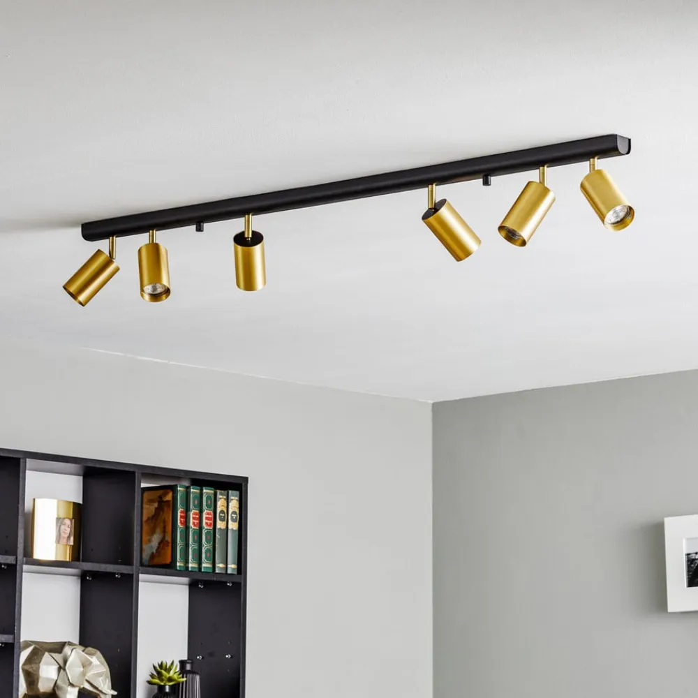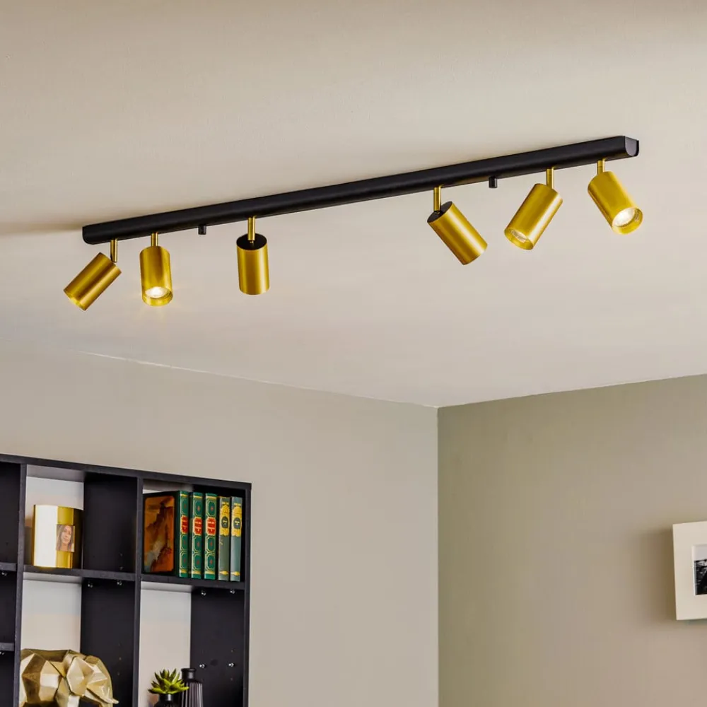 Loftspot Eye Spot 6 lyskilder i farvekombinationen sort og messing mat forener moderne design med funktionel belysning. Denne spotlight er fremstillet af højkvalitetsmetal og passer perfekt ind i forskellige indretningsstilarter og sætter stilfulde accenter i stuer og spisestuer, entreer og køkkener. De seks individuelt justerbare spots muliggør målrettet belysning og skaber dermed en behagelig atmosfære.