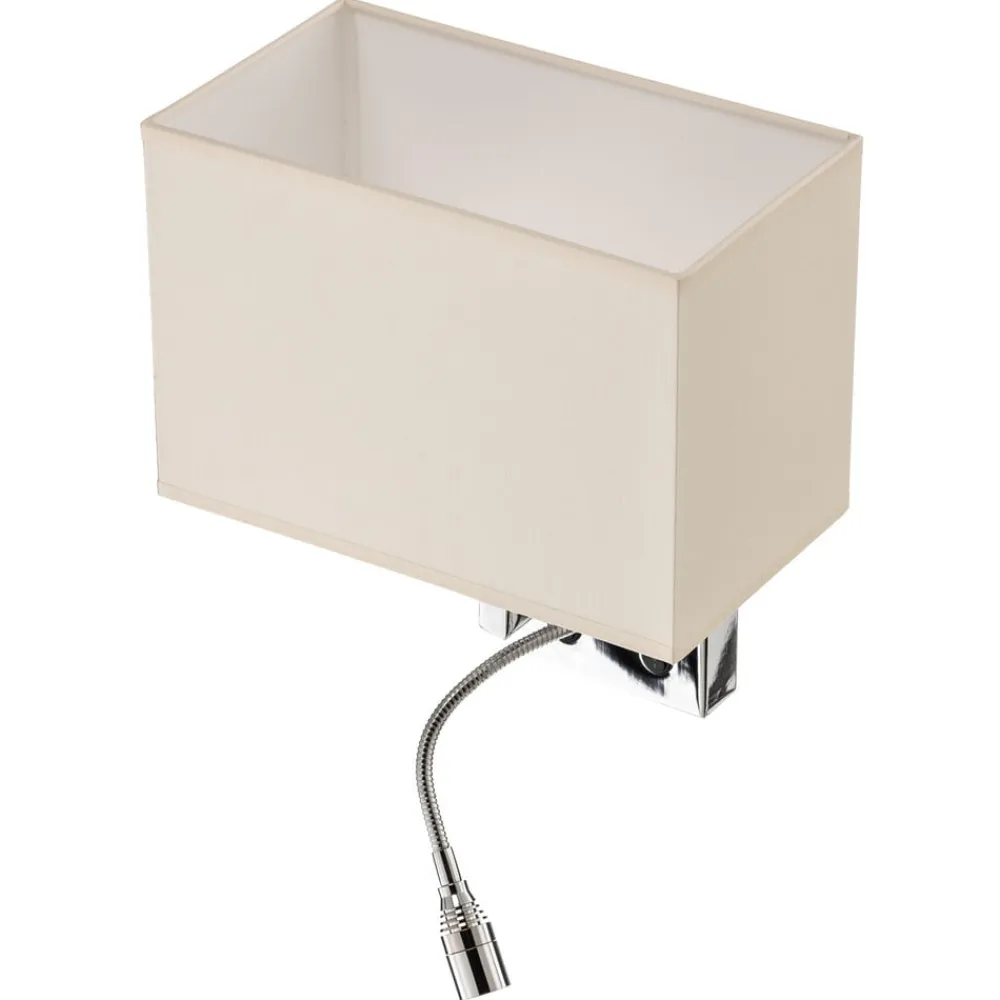 Væglampe Hotel LED kombinerer stilfuldt design med praktisk funktionalitet. Lampen er fremstillet af højkvalitets metal og tekstil og passer perfekt ind i ethvert soveværelse. Kombinationen af hvid og kromfarvet finish giver lampen en tidløs elegance, der passer til både klassiske og moderne indretningsstilarter.
