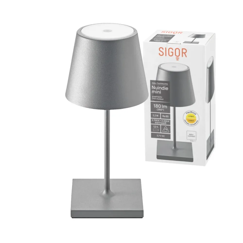 Nuindie mini LED genopladelig bordlampe, USB, grafit, IP54, dæmpbar^Sigor Outlet