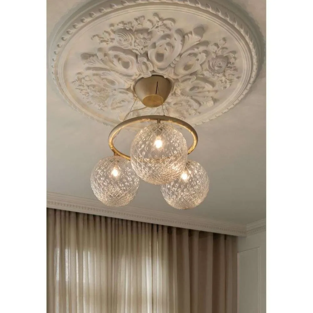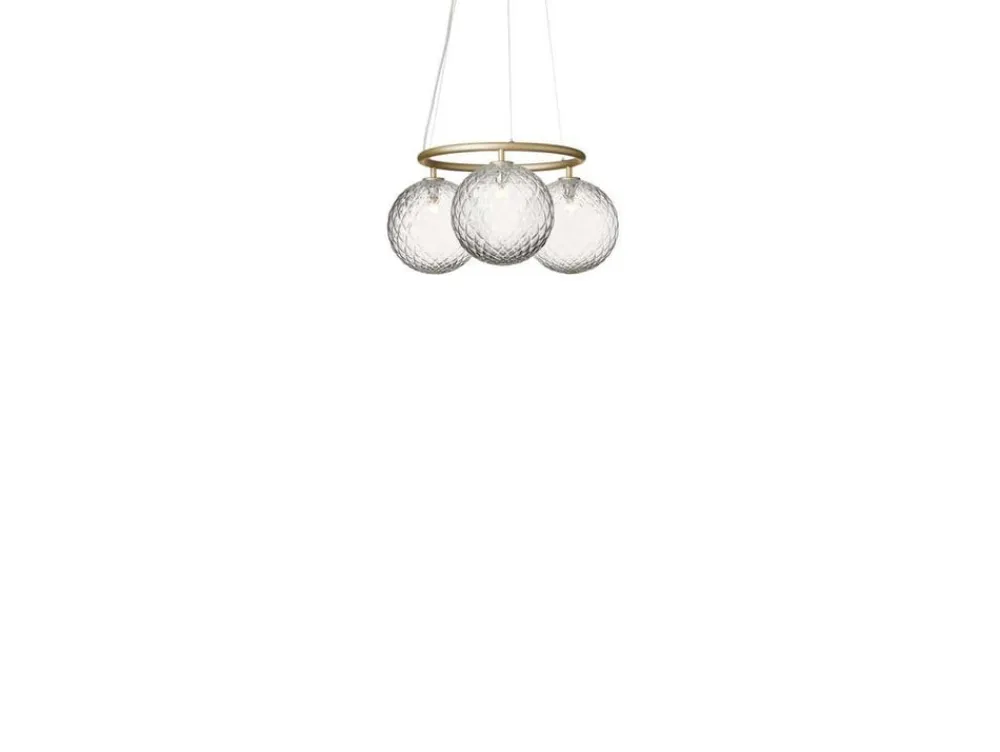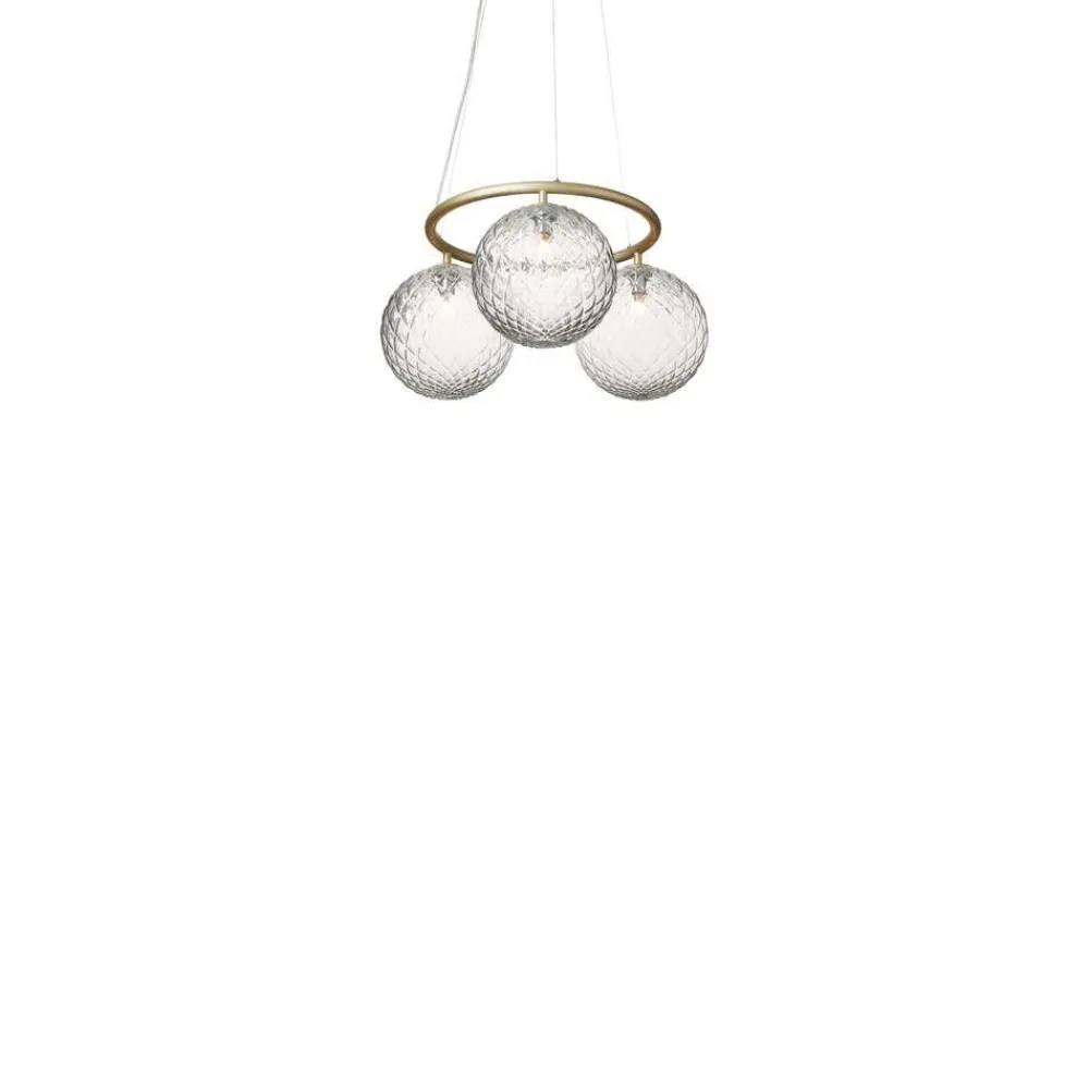 3 lyskilder lysekrone Miira 3 Circular med messingfinish, klart glas