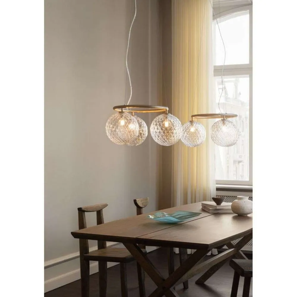 Lysekrone Miira 3 Circular i metal med messingfinish og mundblæst, klart glas udstråler det skandinaviske designs klare formsprog og passer nemt ind i mange indretningsstilarter. Farvekombinationen skaber en harmonisk æstetik, der passer perfekt ind i spisestuen og stuen. Sofie Refer’s design er baseret på subtil raffinement, der sætter præg på både moderne og klassiske indretningsstilarter.