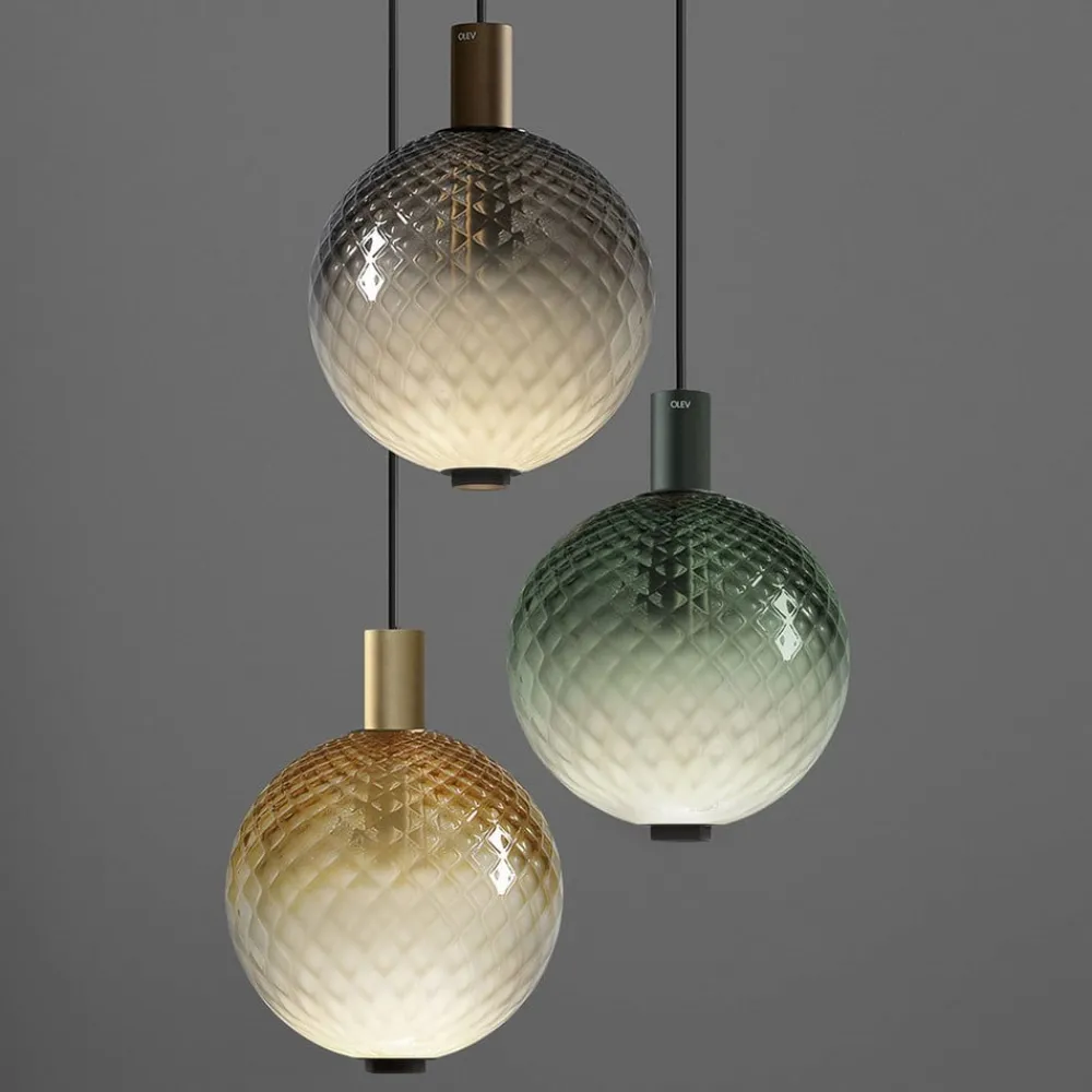 LED-pendellampe Beam Stick Nuance Balloton med struktureret, mundblæst glas