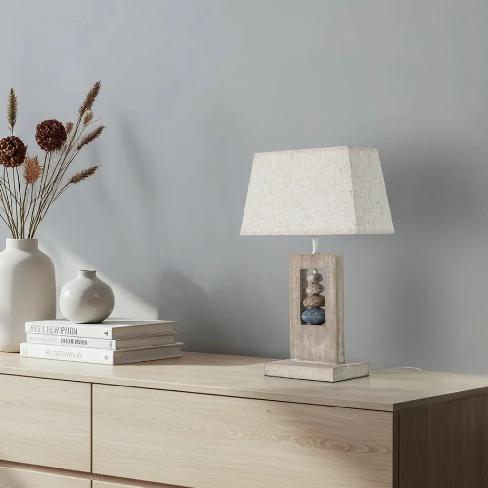 Miriel bordlampe: Skandinavisk design møder naturlige materialer Miriel bordlampen kombinerer skandinavisk elegance med varmen fra naturlige materialer. Dens design er kendetegnet ved en harmonisk kombination af lyst træ og beige tekstil, som giver ethvert rum en indbydende atmosfære. Brugen af harpiks supplerer materialevalget og sikrer en holdbar og robust konstruktion. Denne lampe er ideel til stuer og soveværelser, hvor den vil imponere med sit stilfulde udseende og finish i høj kvalitet.