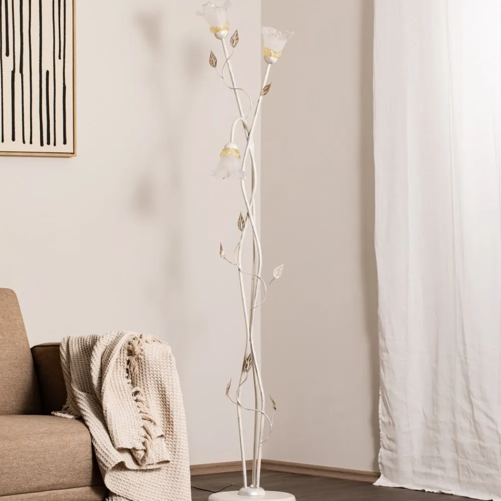 Lancia gulvlampe, elfenbensfarvet, 3 lyskilder, jern, glas