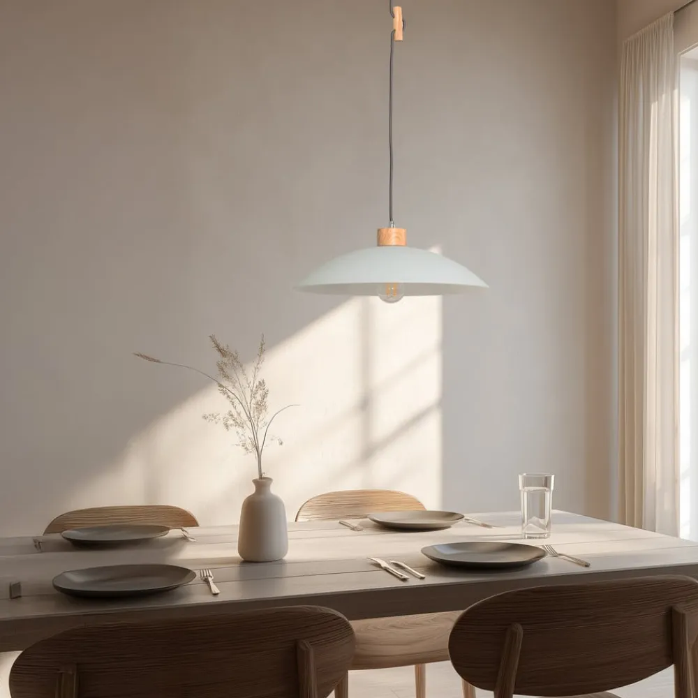 Hængelampen OHANA forener skandinavisk design med den naturlige elegance af opalglas og egetræ. Denne lampe er et ægte blikfang i enhver stue, spisestue eller køkken. Det opalhvide glas i den buede, runde lampeskærm suppleres af egetræ, der er brugt over skærmen, på baldakinen og ved kabelføringen til højdejustering. Dette giver lampen en varm og indbydende udstråling, der passer harmonisk ind i forskellige indretningsstilarter. Pendellampen OHANA er fremstillet i Europa og står for kvalitet og holdbarhed. Et stilfuldt og funktionelt belysningselement, der overbeviser med sit gennemtænkte materialevalg og sin finish.