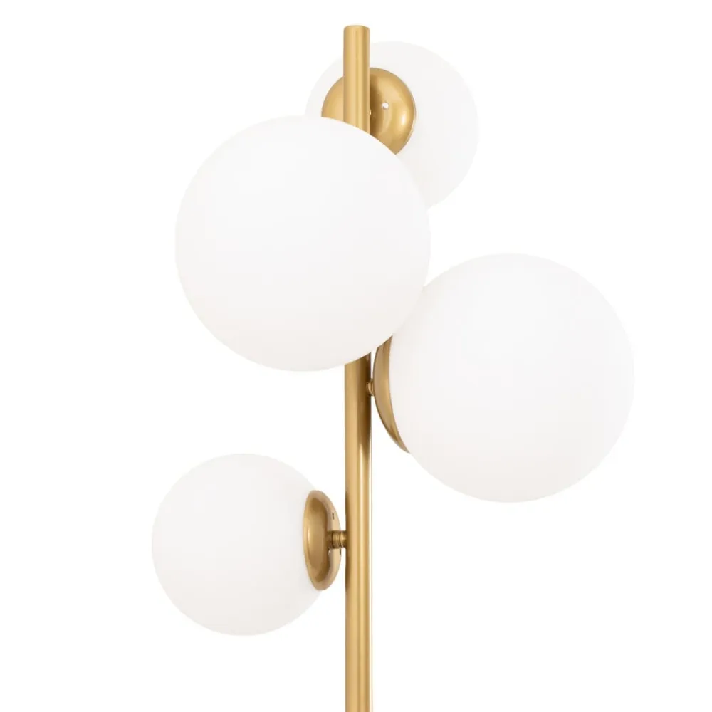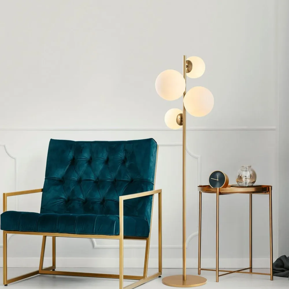 Gulvlampen Fazli kombinerer de ædle materialer glas og metal i en harmonisk komposition, der giver ethvert rum et særligt præg. Den gyldne farve i kombination med hvide accenter skaber en luksuriøs atmosfære, der gør indtryk i både stuen, spisestuen og soveværelset. Denne lampe er ikke kun et funktionelt element, men også et stilfuldt designobjekt, der værdsætter indretningen.