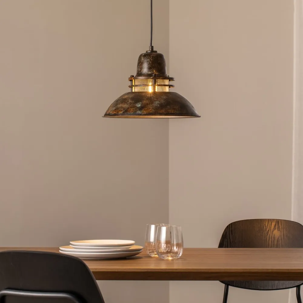 Hængelampe Tibet, antikbrun, Ø 34 cm, metal, E27