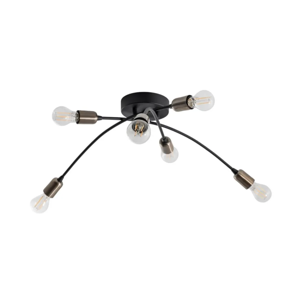 Loftlampen Banana i elegant sort kombinerer et moderne design med funktionel alsidighed. Den er fremstillet af højkvalitetsmetal og passer perfekt ind i forskellige boligområder som stuen, spisestuen, entreen, køkkenet og badeværelset. Med sine seks E27-fatninger giver den en imponerende lysstyrke, der bader ethvert rum i en behagelig atmosfære.