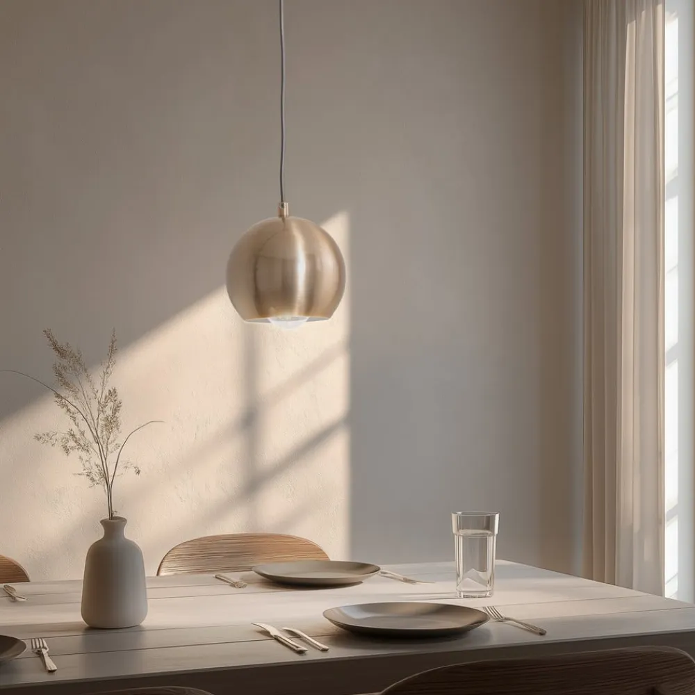 Hængelampe Berceste med kugleformet skærmuanset om det er i stuen, spisestuen, køkkenet eller soveværelset – lampen sætter et glansfuldt præg overalt. Muligheden for at dæmpe lyset via en ekstern dæmper gør det muligt at tilpasse lysintensiteten individuelt og dermed skabe den ønskede atmosfære