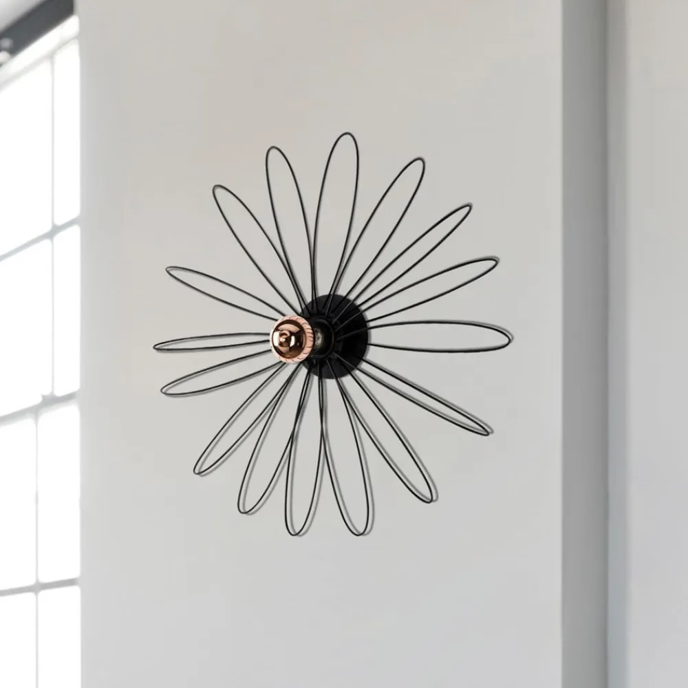 Hemdem 707-A væglampe: elegance møder funktionalitet Oplev Hemdem 707-A væglampen, som ikke kun skaber et visuelt højdepunkt med sit stråledesign og elegante sorte finish, men også påvirker atmosfæren i stuen, spisestuen, soveværelset eller gangen betydeligt. Armaturets moderne stil passer perfekt ind i moderne interiør og skaber en atmosfære, der både kan være inspirerende og beroligende. Hemdem 707-A er fremstillet i Europa og står for kvalitet og lokalt håndværk. Selvom der ikke følger en dæmper med denne model, kan lysets intensitet tilpasses ved at installere en ekstern dæmper for at skabe den ønskede stemning. Med Hemdem 707-A bliver lyset et fascinerende element i dit hjem, der ændrer rummet og stemningen for altid.