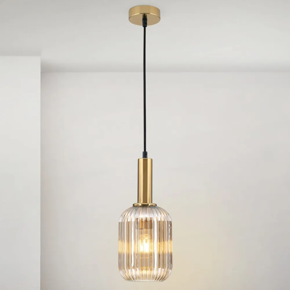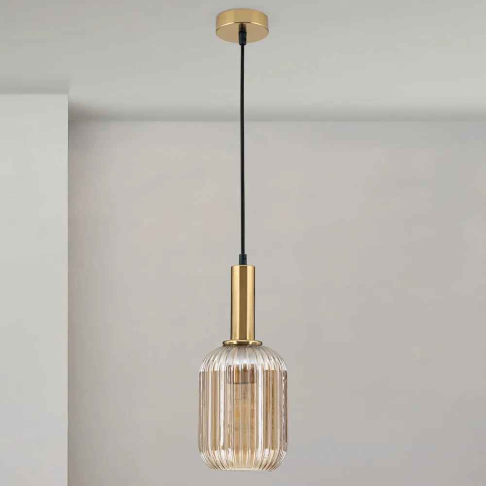Carneval pendellampe, antik messing/amber, Ø 14 cm, glas