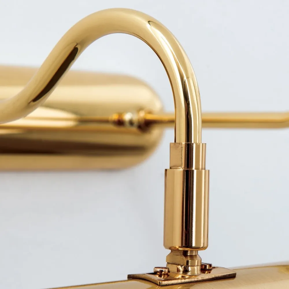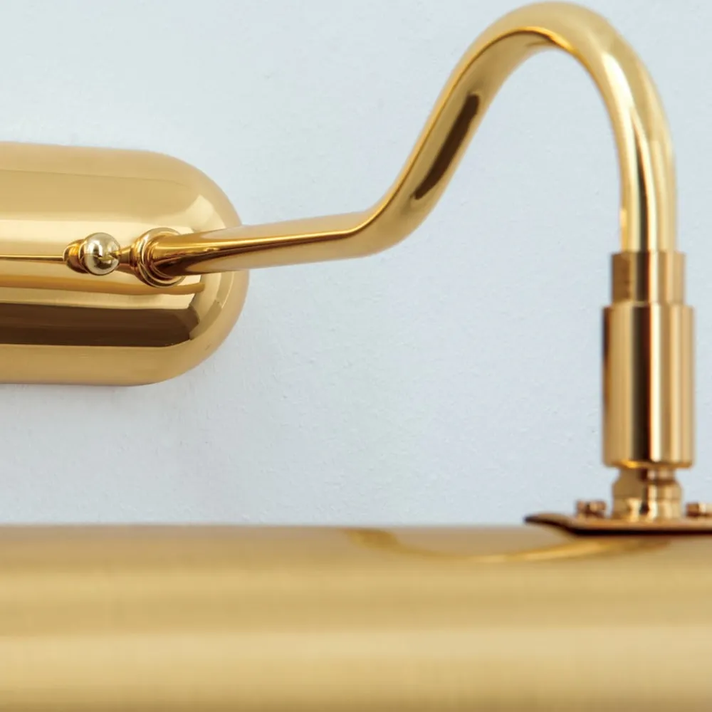 Gallerilampen Lariga er fremstillet udelukkende af metal med en mat messingoverflade. En håndpolering giver den sidste finish. Med en længde på 70 cm skaber den ikke kun den perfekte belysning af kunstværker på væggen, men giver også en behagelig omgivende belysning, som er ønskelig i ethvert rum. Lariga passer med sin enkle elegance til mange boligindretninger.