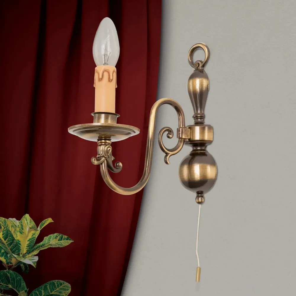 Denne stilrigtige flamske væglampe imponerer med en eksklusiv udforming i messing og støbte komponenter. Den håndbehandlede overflade i antik messing giver lampen et egenartet touch. Væglampen er et naturligt blikfang i rummet.