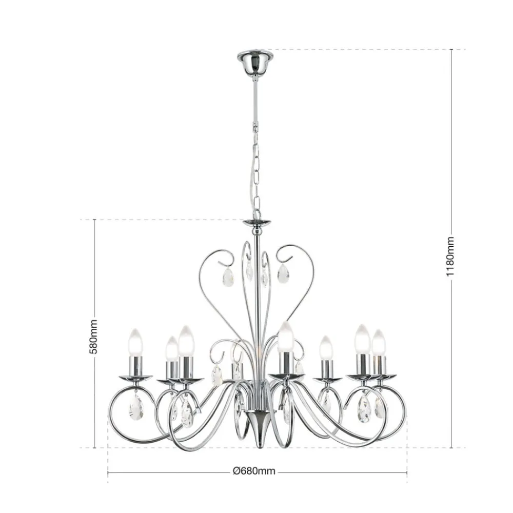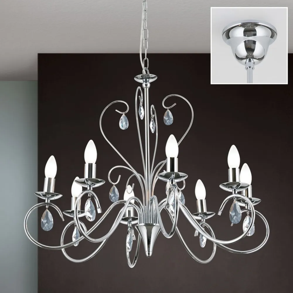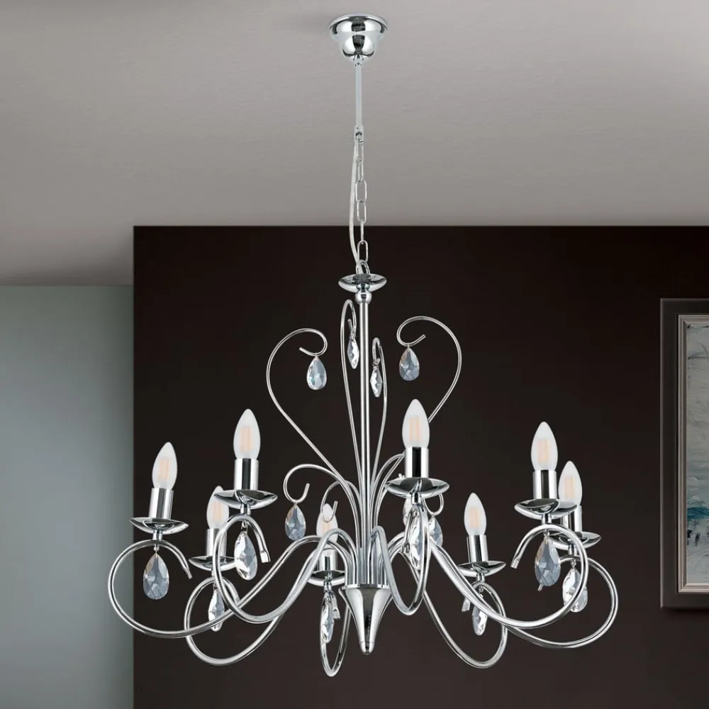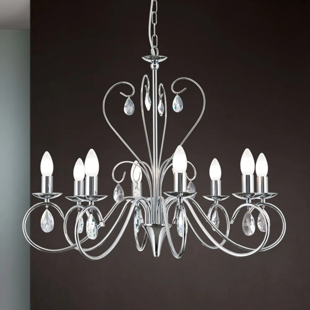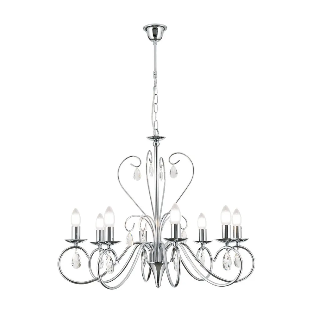 ORION Lysekroner>Lysekrone Alessia 8 lyskilder krystalglas krom