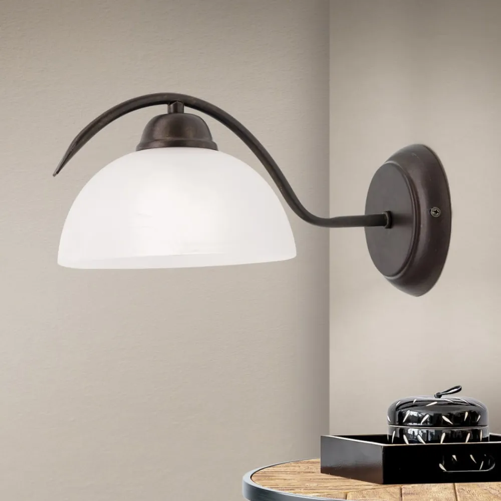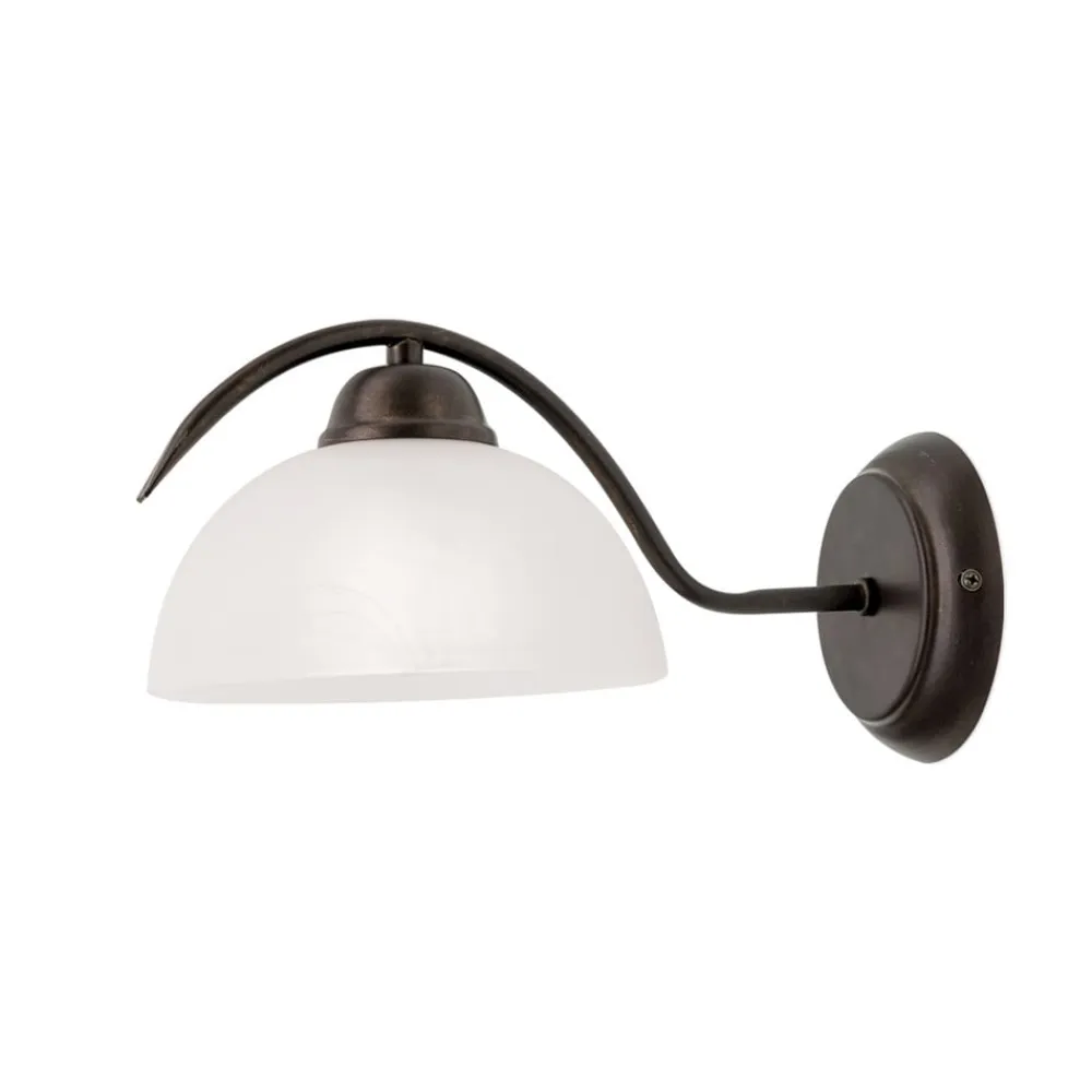 Marco – smagfuld væglampe med antikbrun metalramme Med sin alabastfarvede glasskærm giver Marco-væglampen et stemningsfuldt ekstra lys og imponerer med sit smagfulde design i landhusstil.
