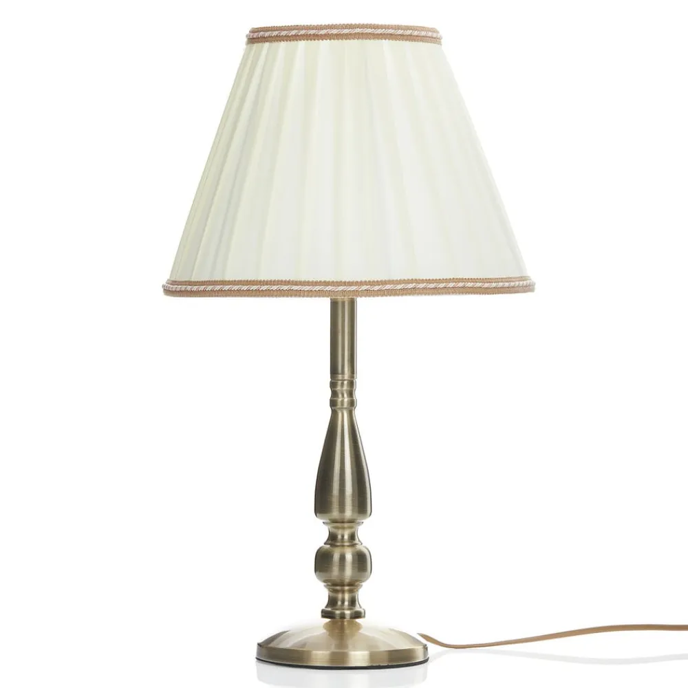 Den cremefarvede plisséskærm og den formfullendte, patinerede lampefod garanterer en elegant lampeserie. Bordlampen ROSELLA står for stilig belysning og en hyggelig atmosfære man kan føle sig tilpas i.