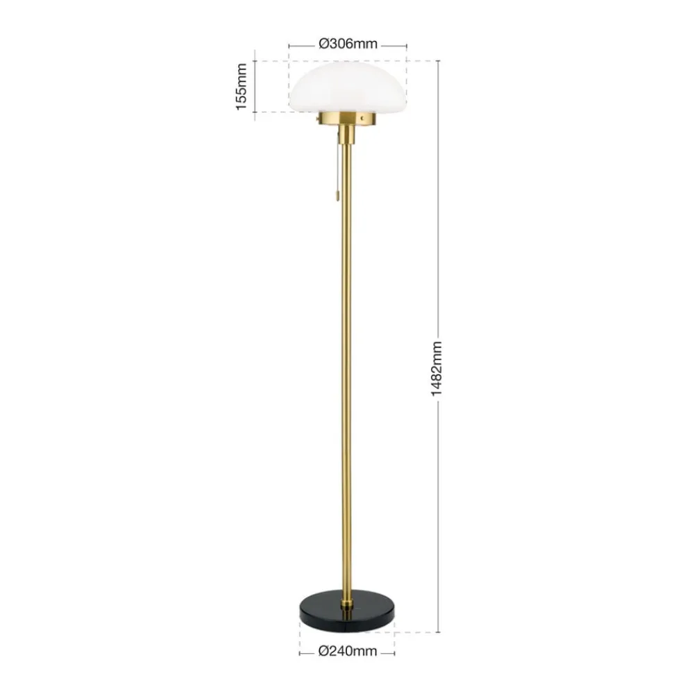 Sparta gulvlampe, sort/messing, glas, marmor, 148 cm