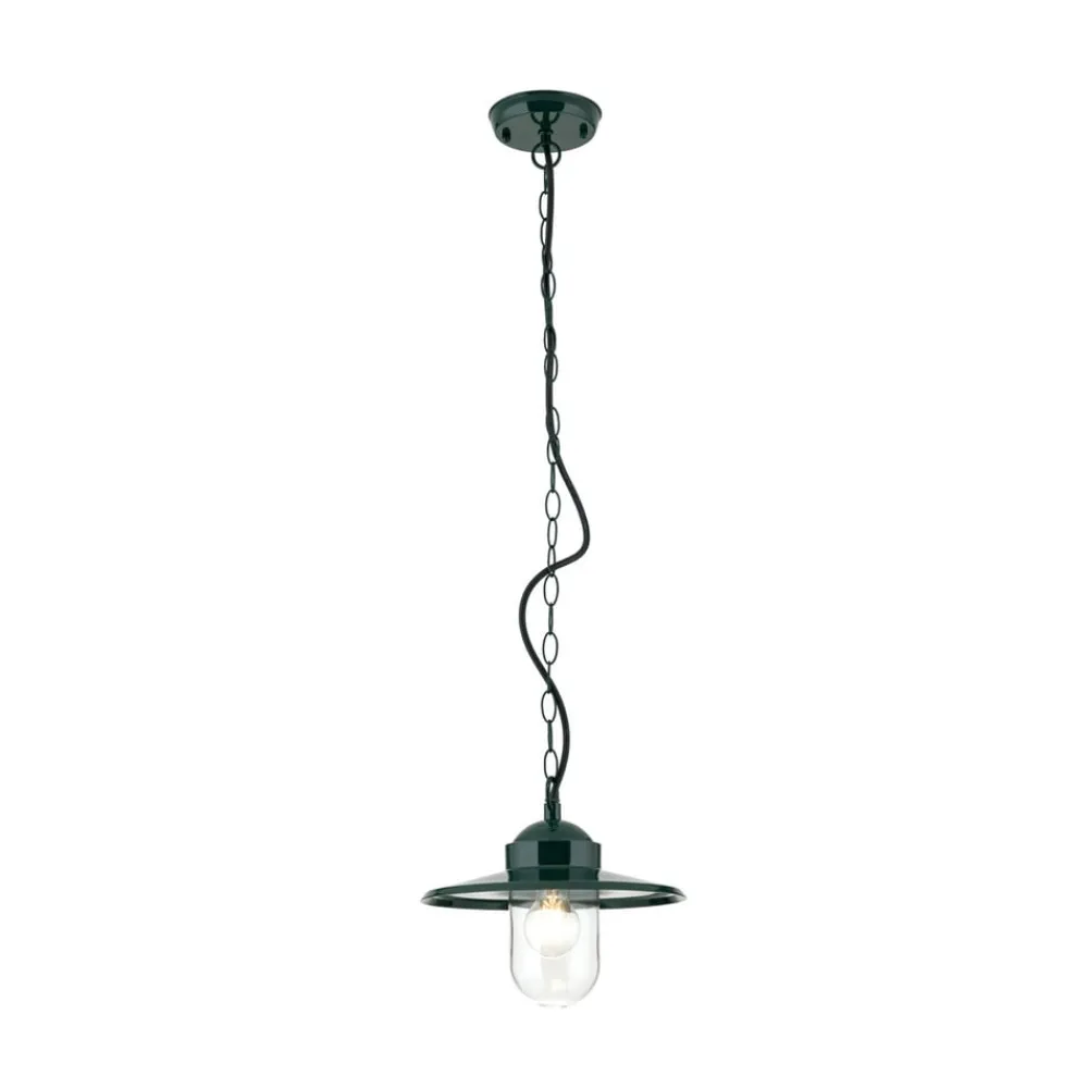Edward udendørs hængelampe, grøn, Ø 27,5 cm, aluminium/glas