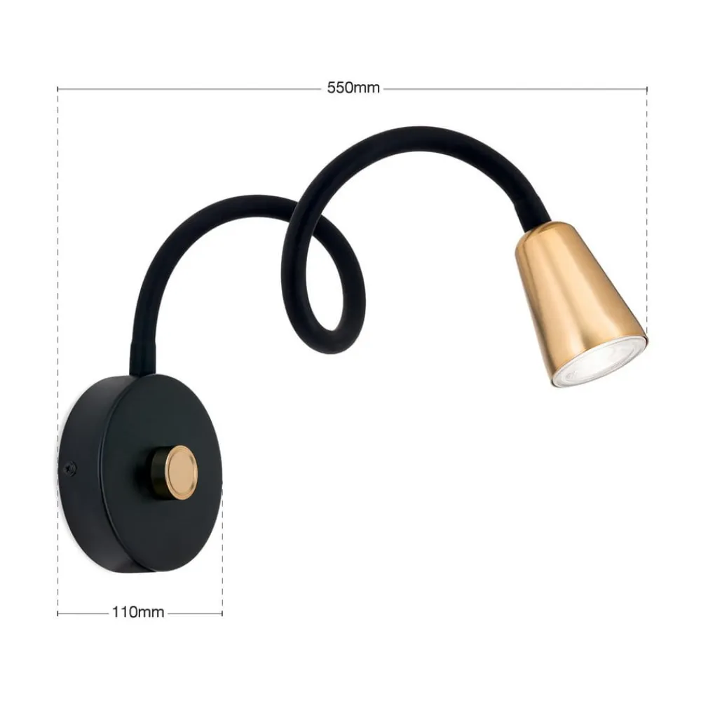 Væglampe Dotty kombinerer et moderne design med høj fleksibilitet, da den er udstyret med en fleksibel hals til målrettet justering af spotten og kan udstyres med en GU10-LED-pære efter eget valg (maks. 10 W). Vægbeslag og spot er fremstillet af højkvalitetsstål. Lampen passer med sin tidløse æstetik ind i forskellige indretningsstilarter. Den integrerede fleksible arm gør det muligt at rette lysstrålen præcist mod det ønskede område. Uanset om det er i stuen, spisestuen eller soveværelset – væglampe Dotty er meget alsidig.