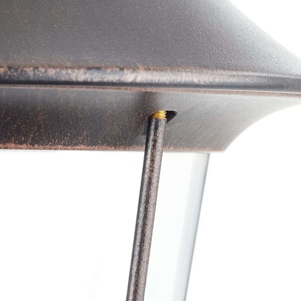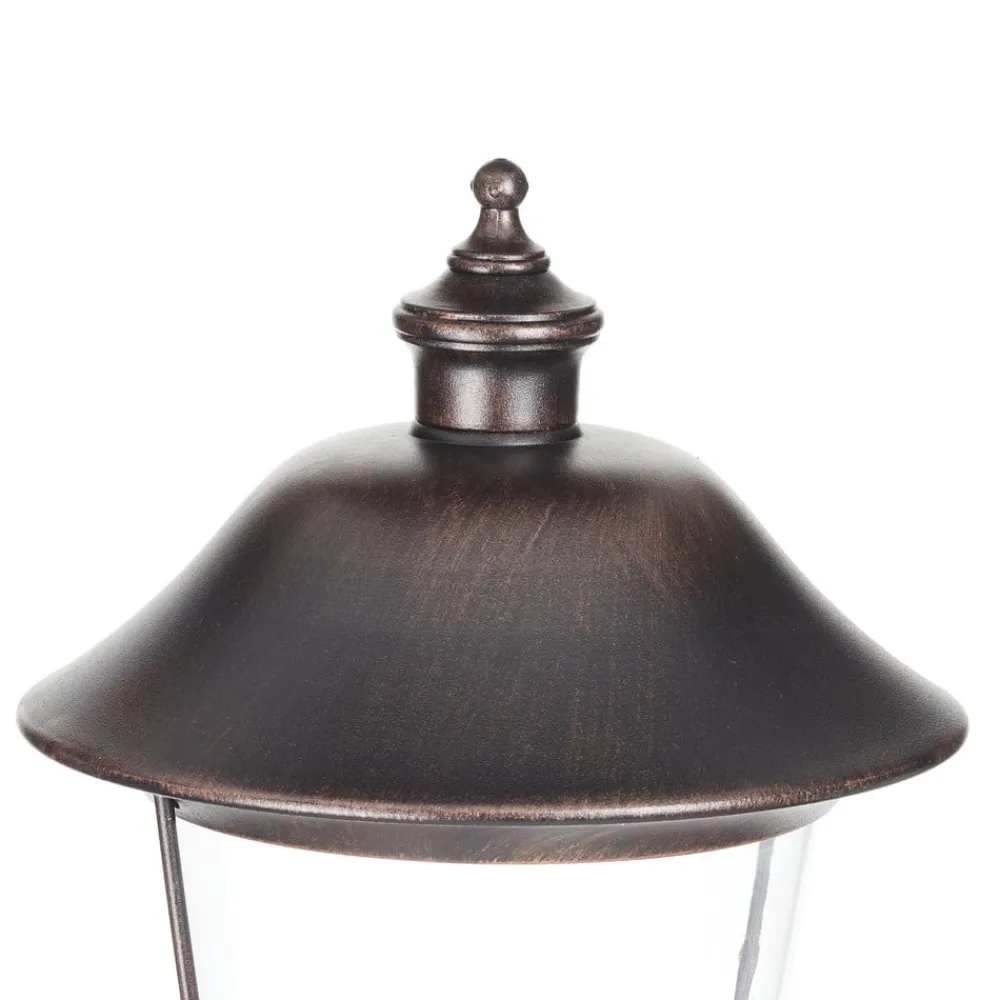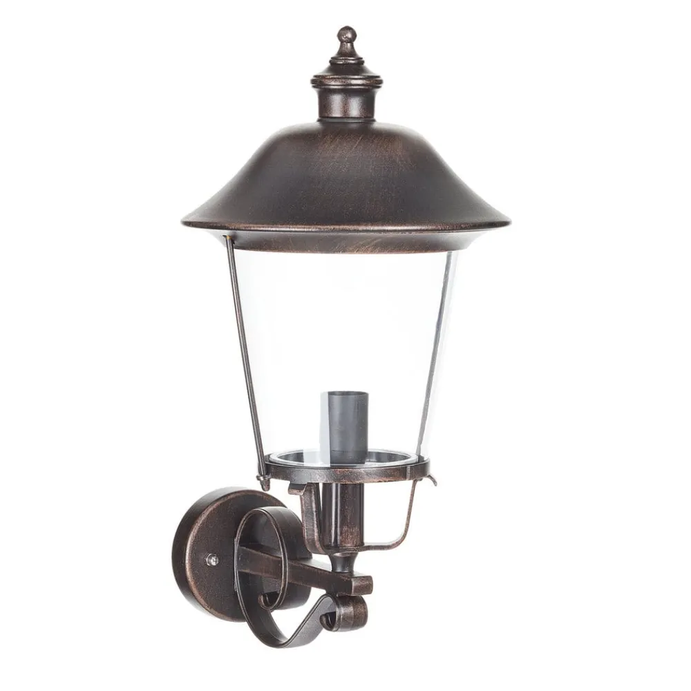 MARIELLAs skærm er rettet opad, og sørger for at denne udendørs væglampe har en charmerende og nostalgisk udstråling. Lampen ligner en klassisk lygte med en sort og kobberfarvet overflade, og skaber en god atmosfære rundt om huset.