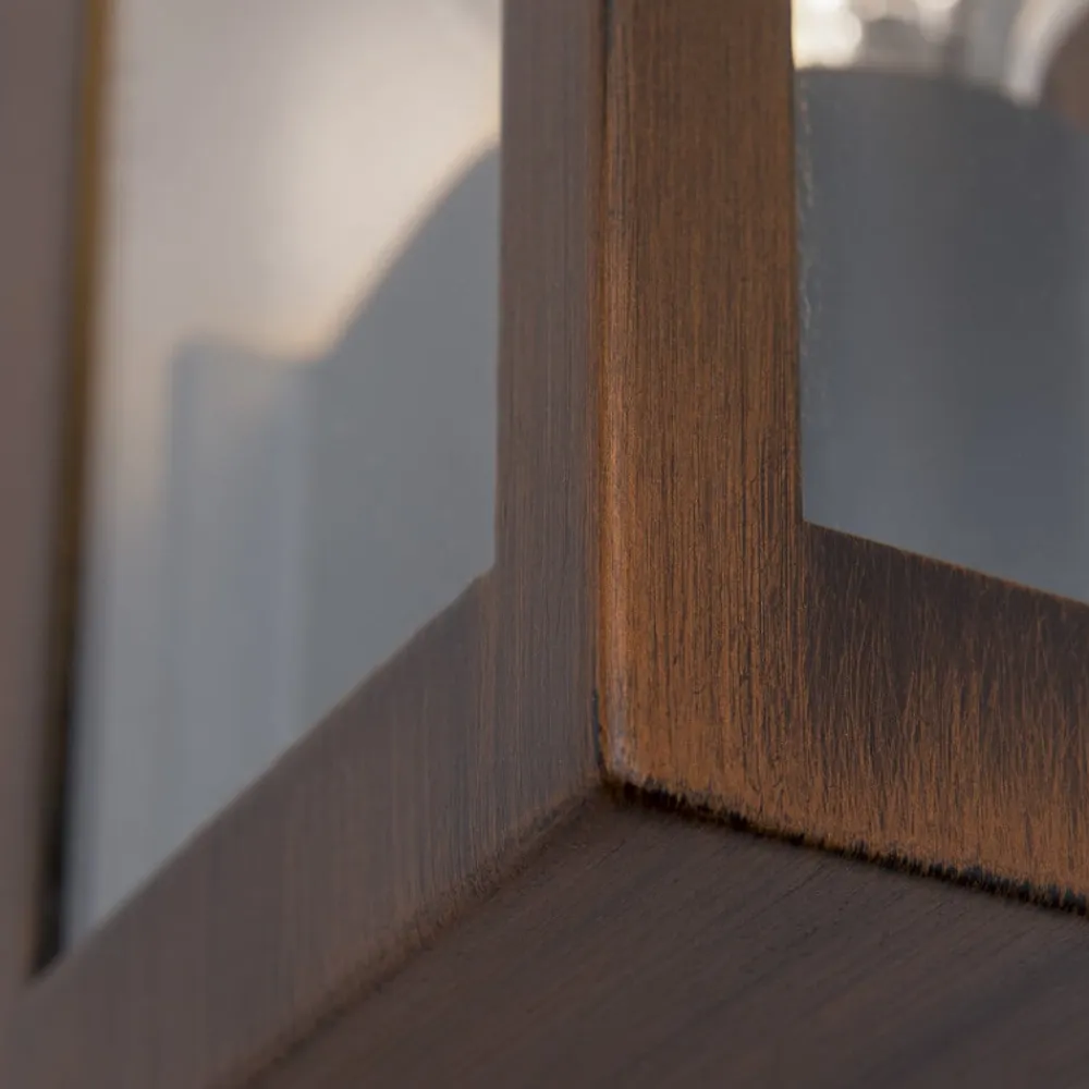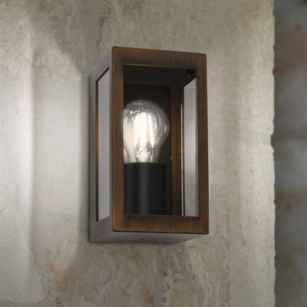 Den tilbyder en æstetisk tilpasningsevne, der passer perfekt ind i forskellige arkitektoniske stilarter. Den klare glasfront på tre sider giver en generøs lysudbredelse, mens en diskret messingreflektor bag pæren reflekterer lyset blidt og skaber en varm og indbydende atmosfære.