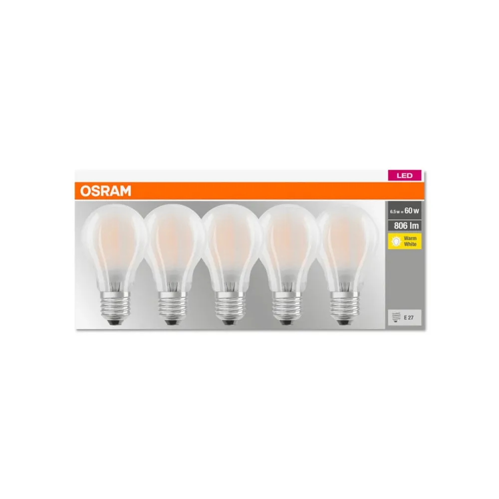5-pack – LED lampe Base Classic A med E27 sokkel, 7 W, mælkeagtig glaspære, 806 lumen