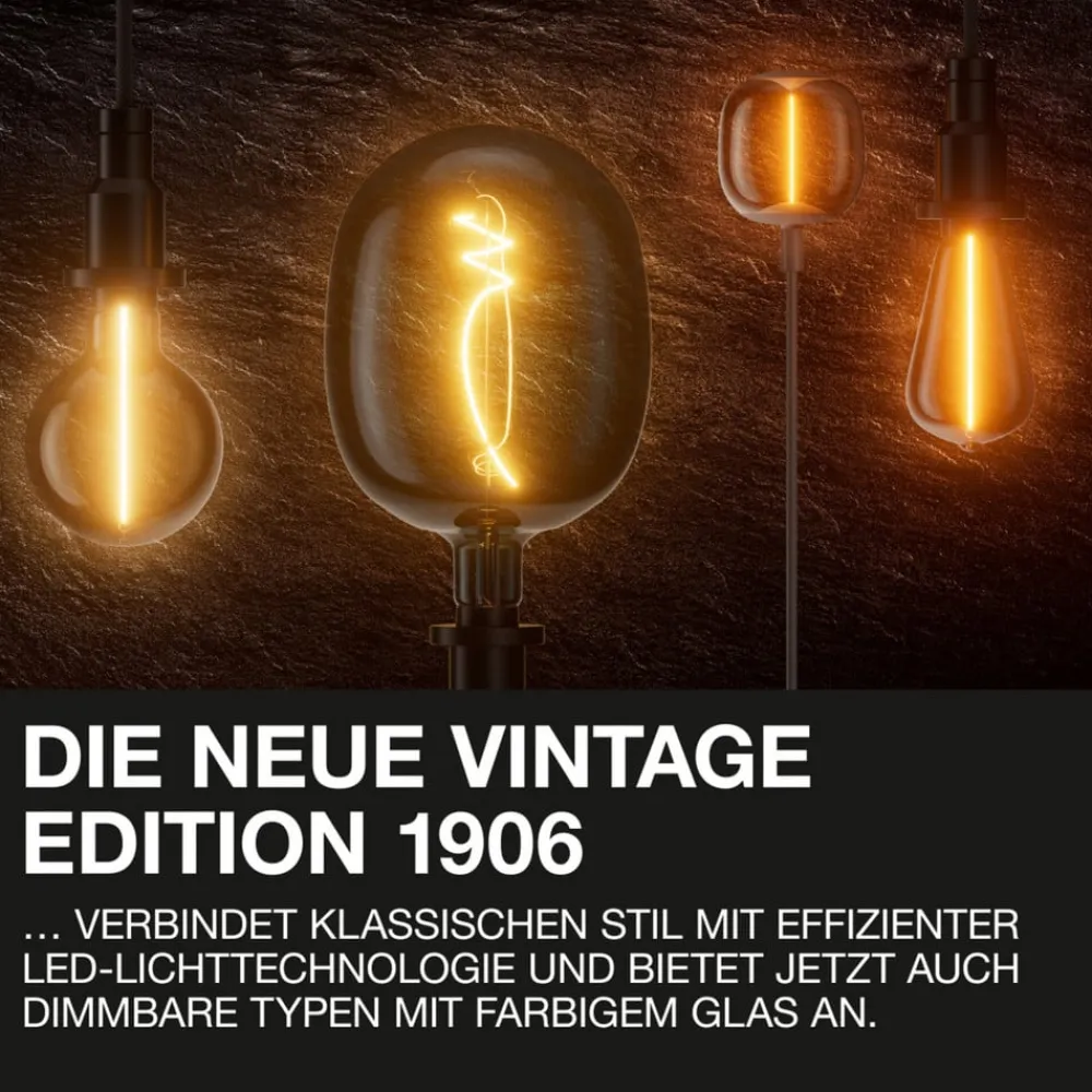 LED kertepære E14 4W Vintage Edition 1906 Classic B Filament – ekstra varmhvid lysfarve med 2.400 K – gyldent tonet glas for en hyggelig atmosfære – ideel til åbne armaturer – ikke dæmpbar